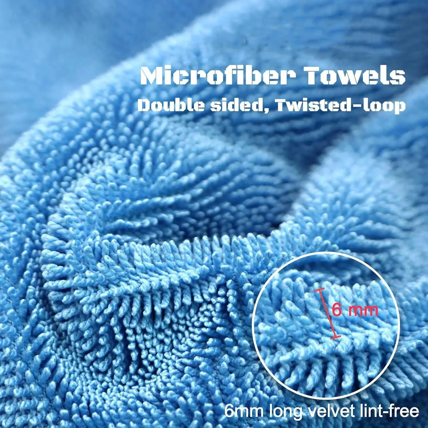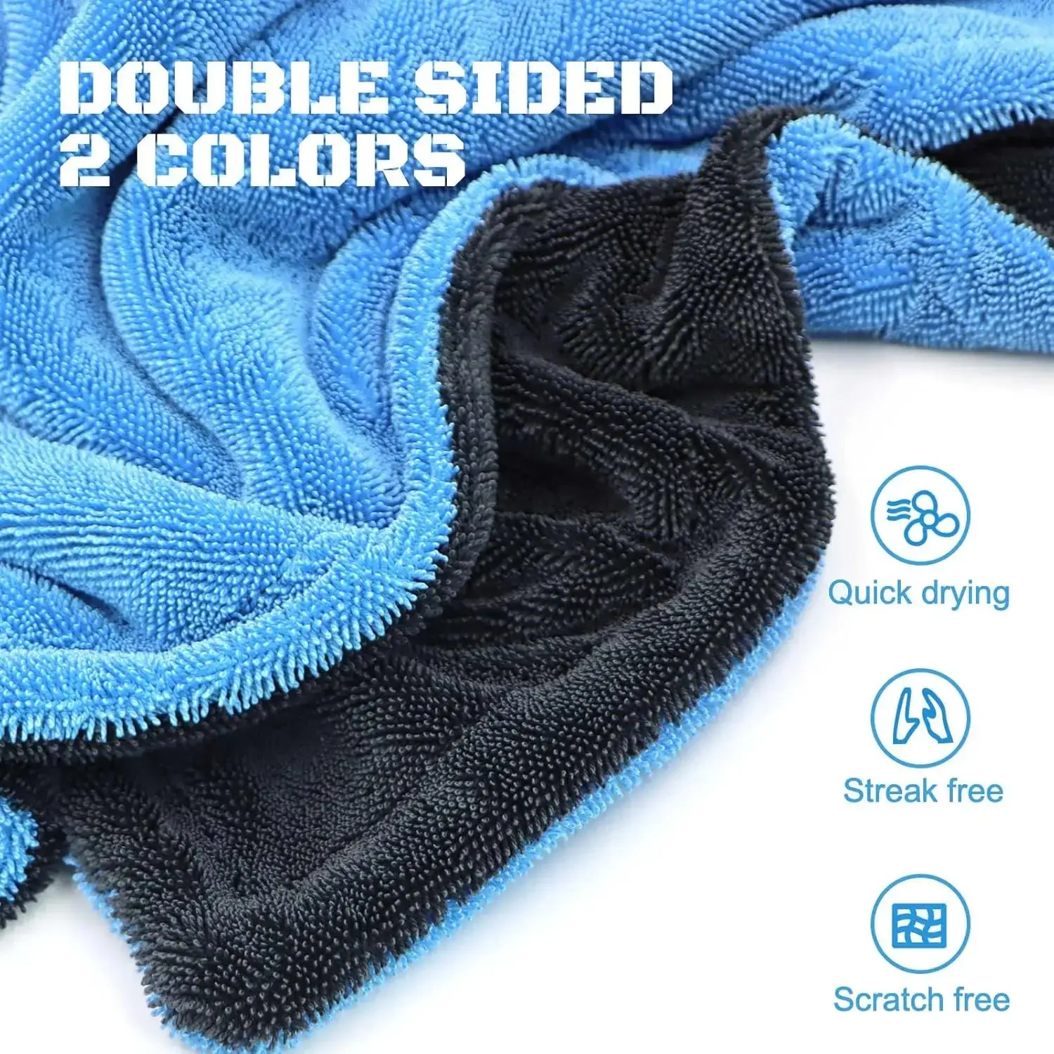 ·1400GSM Super Absorbent & Quick-Drying. Featuring twisting yarn technology, this scratch-free microfiber towel absorbs 50% more water than ordinary towels (1400GSM premium density). It soaks up spills instantly and dries quickly, leaving zero lint or streaks—ideal for car detailing, waxing, and polishing.