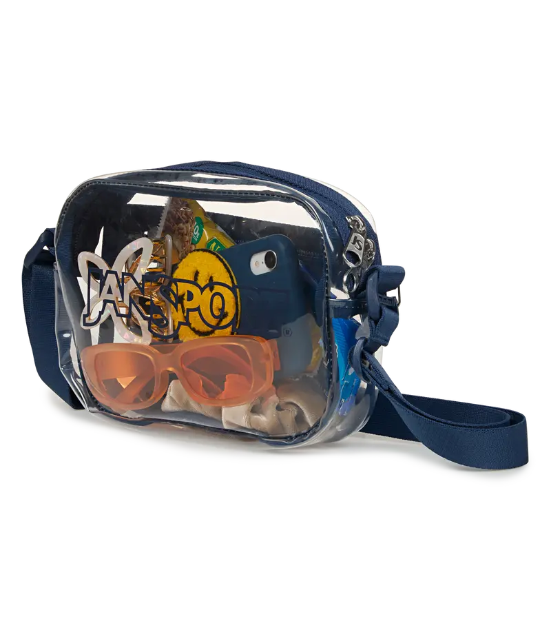 Transparent, but never subtle. The Clear Crossbody was made for good times, great outfits, and zero bag drama at the gate. Made in part with 30% recycled main body material, it's sized for your phone, wallet, tickets, and touch-up kit, with a removable strap and back zip pocket for easy access mid set.