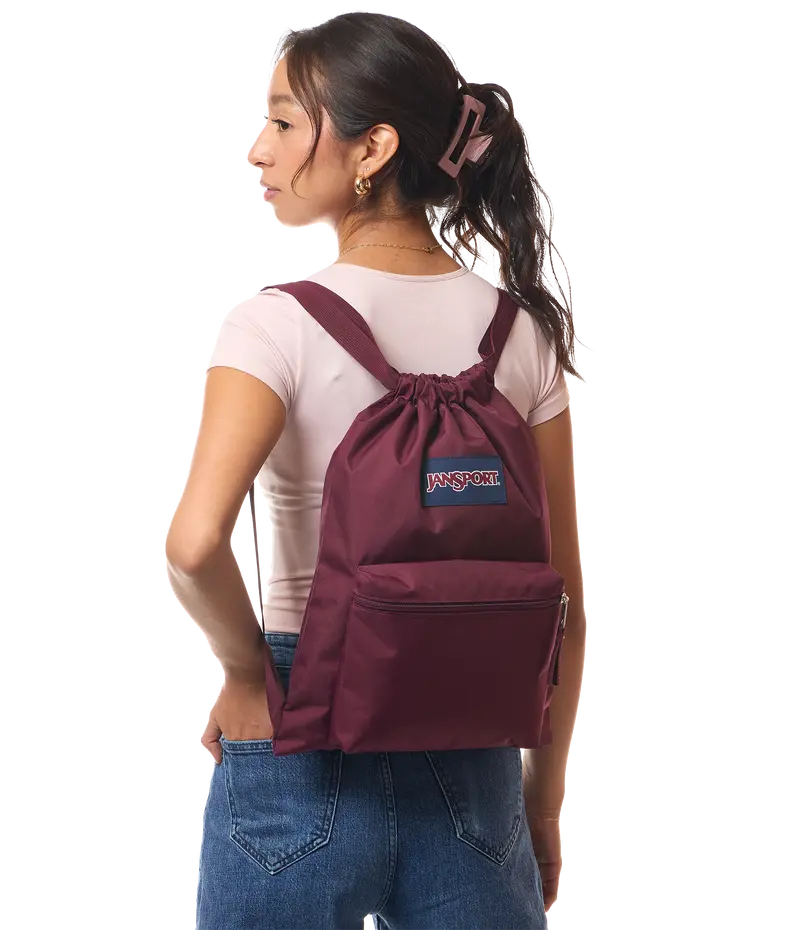 Your on-the-go, utility essential. Easily access to your stuff with the drawstring cinch top. Use the front zip pocket for extra storage, get comfy and find your style with adjustable shoulder straps.
