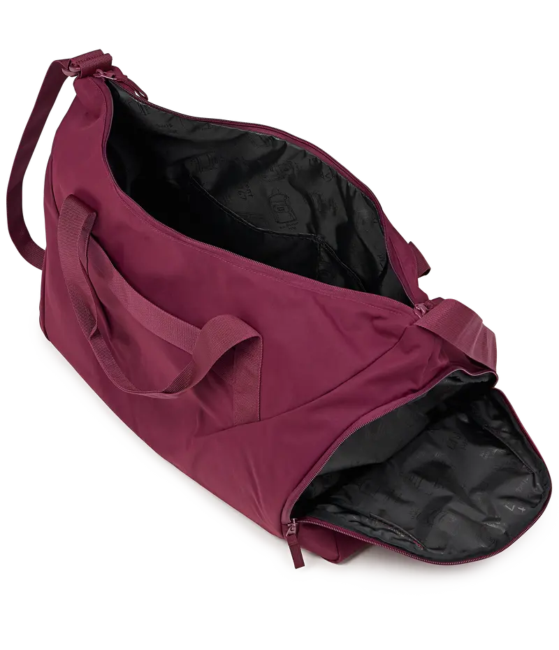 For packed schedules that demand order, the Recharge Large Gym Bag brings structure to everything you carry. Its roomy interior and easy-access pockets organize work essentials alongside workout gear. A dedicated shoe compartment fits US men’s size 14, keeping clean and worn items clearly apart. The main body fabric uses recycled crinkle nylon twill, delivering everyday durability with a relaxed feel.