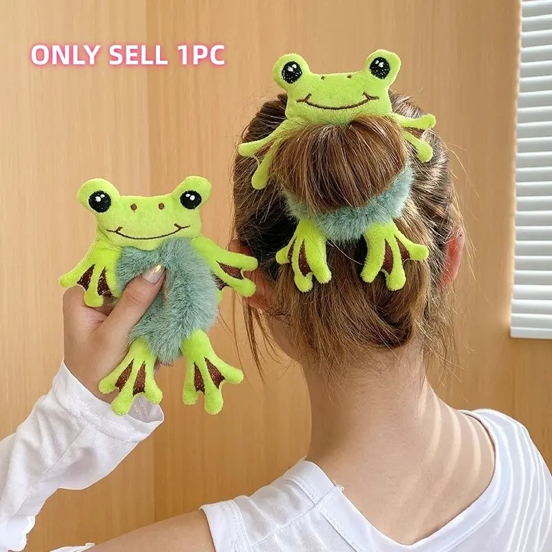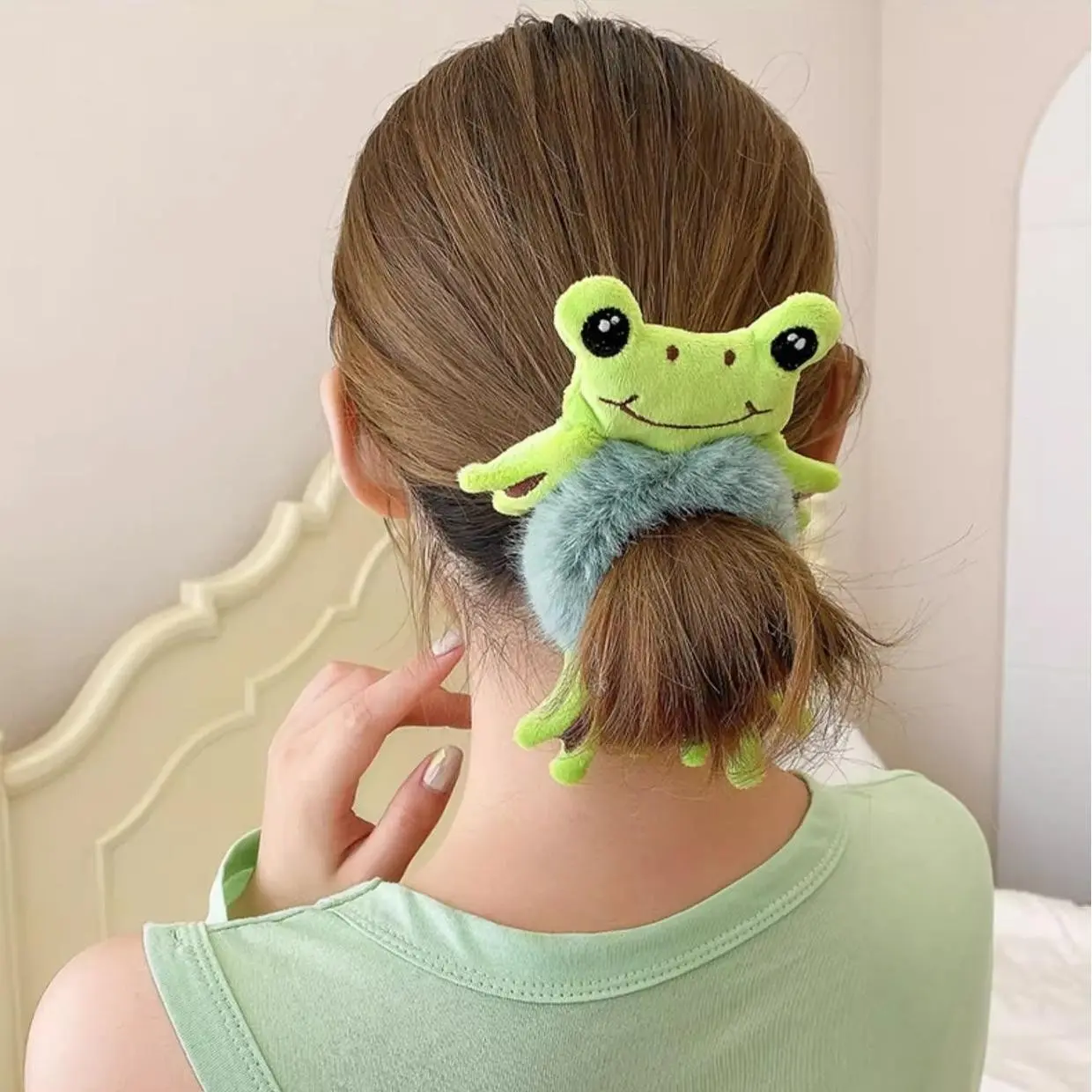 Women Cute Cartoon Big-Eyed Frog Plush Hair Scrunchies, Funny Hair Ties for Ponytail, Buns, Daily Styling, Autumn/winter