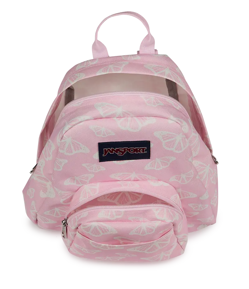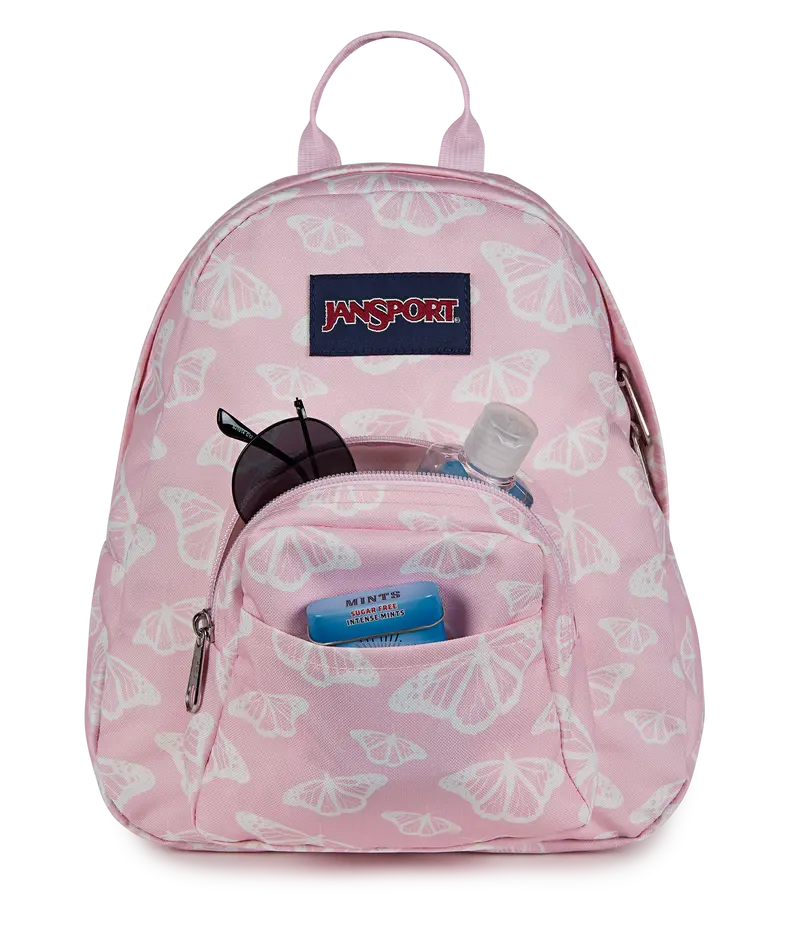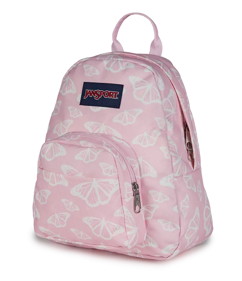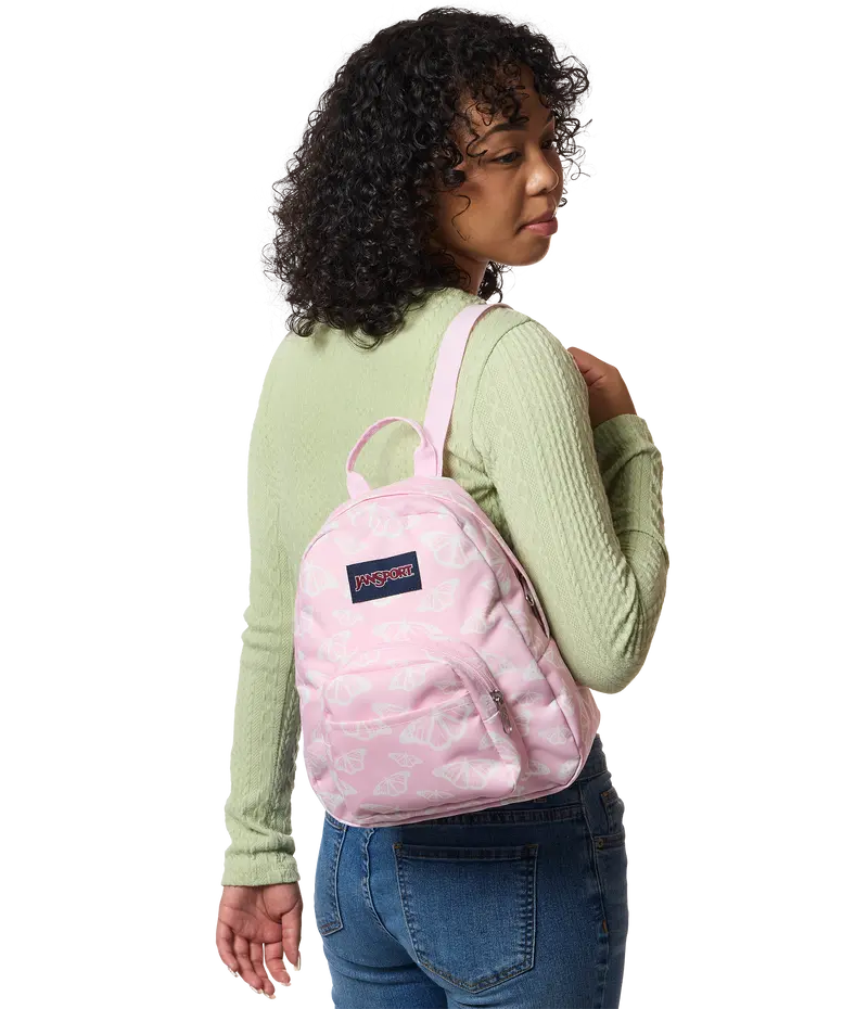 Small and light, the JanSport Half Pint is the perfect throw-on-and-go backpack. Features include a front utility pocket and key clip.