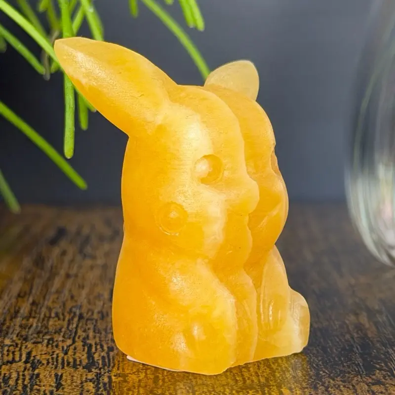 This cheerful Pikachu-inspired carving is made from yellow calcite, featuring warm golden tones with soft, natural banding that gives it a glowing, sunny appearance. The semi-translucent quality of the stone allows light to pass through beautifully, enhancing its vibrant color.