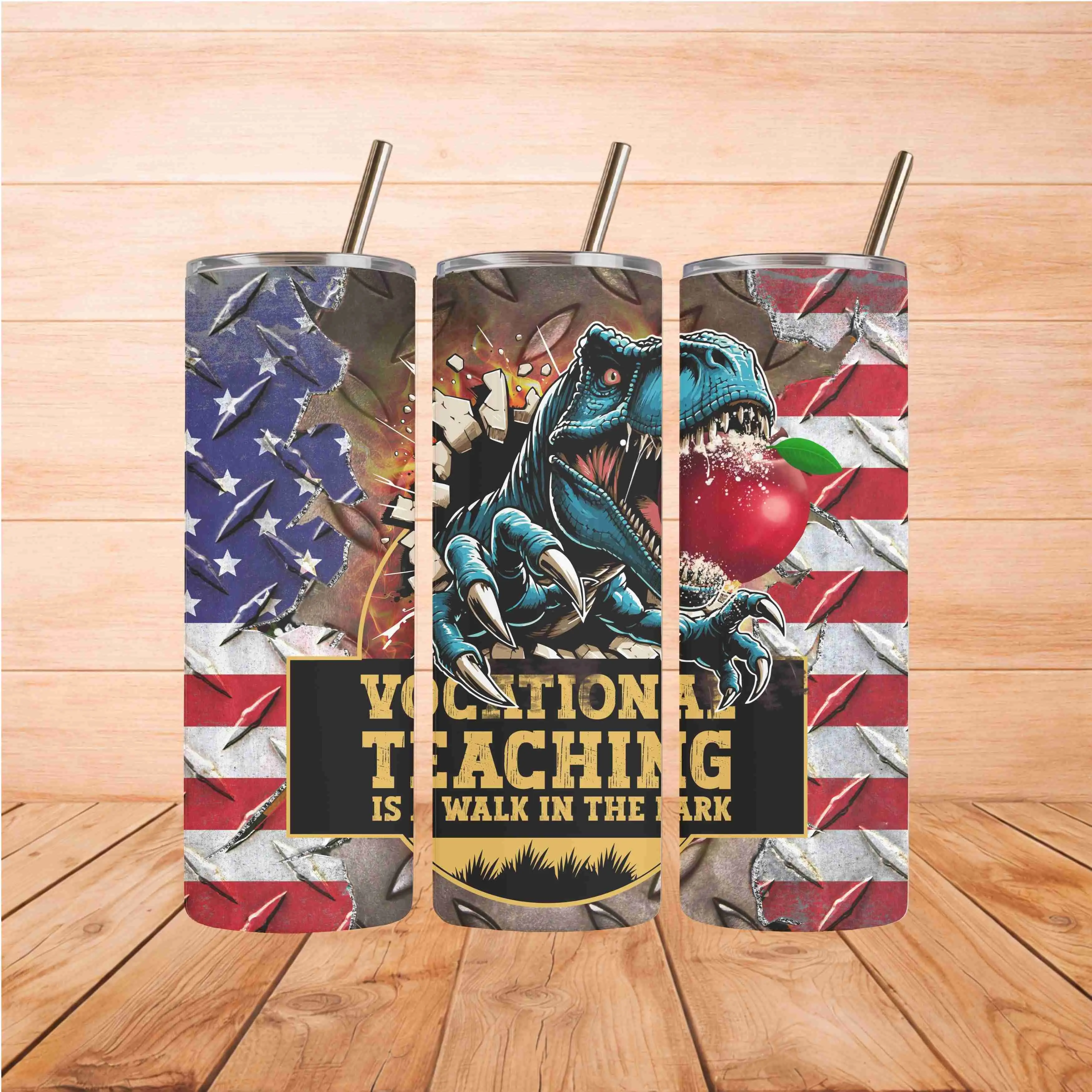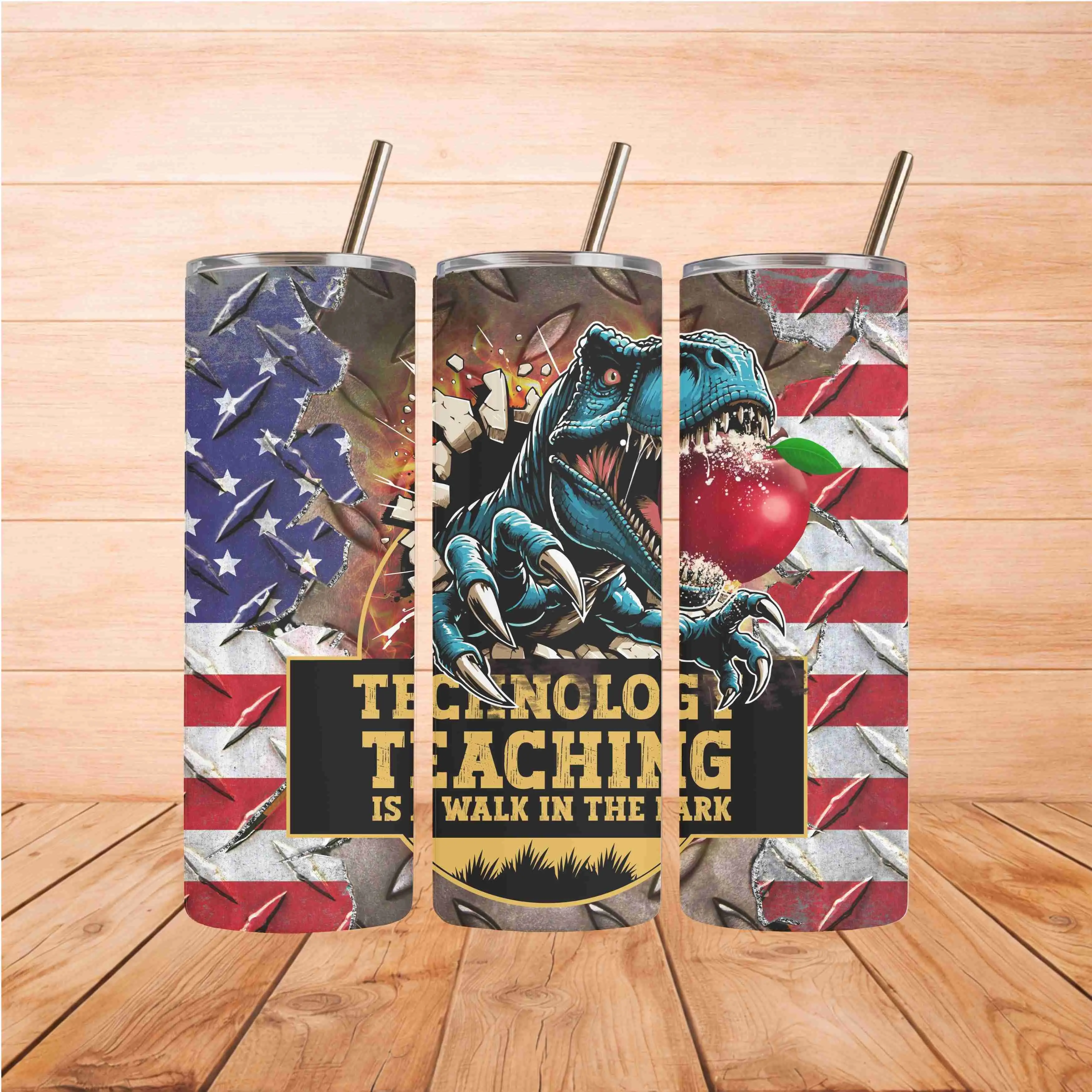 Make teaching a little more fun (and a lot more caffeinated) with this bold, eye-catching Teacher Dinosaur Tumbler 🦖🇺🇸