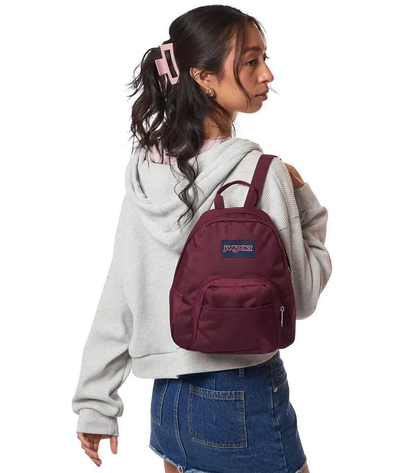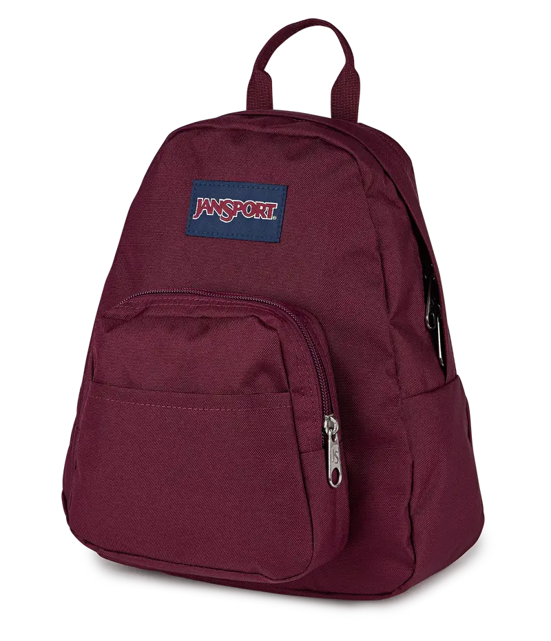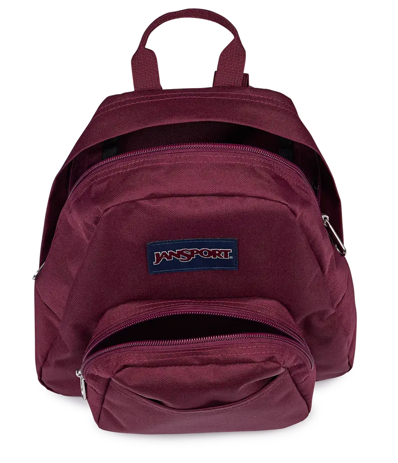 Small and light, the JanSport Half Pint is the perfect throw-on-and-go backpack. Features include a front utility pocket and key clip.