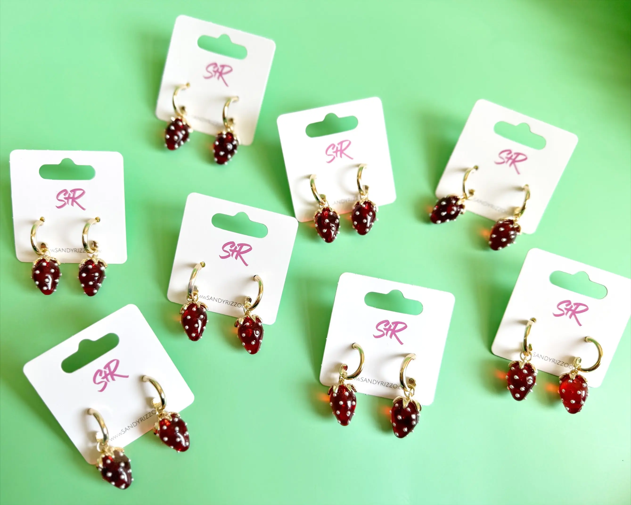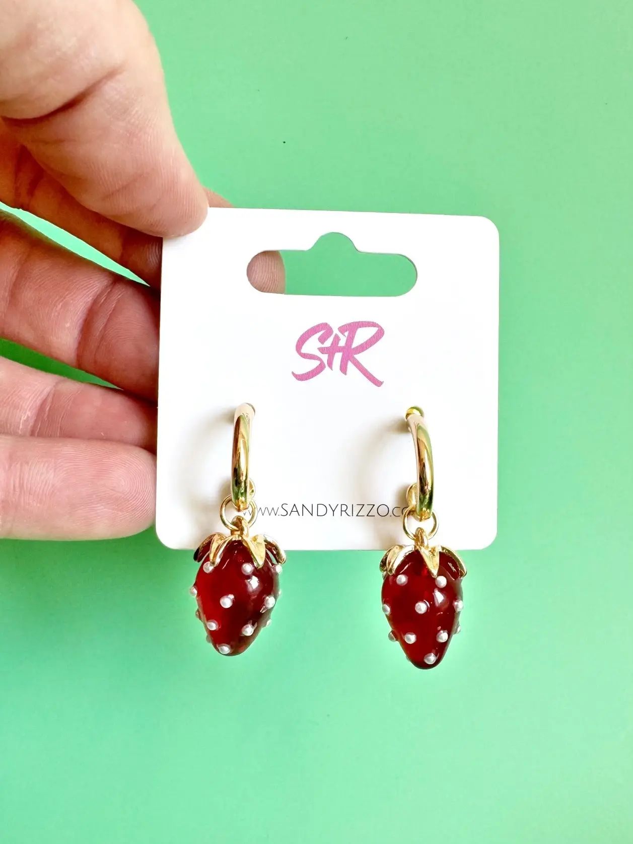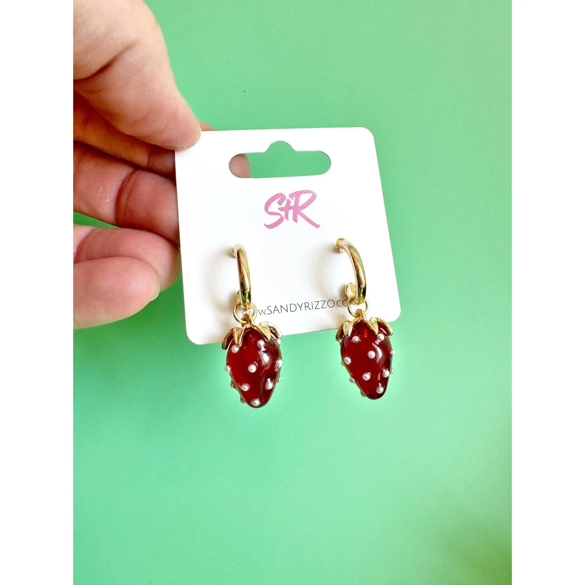 A gold huggie earring with an adorable red strawberry dangle. The cutest earring to take you from spring to summer!