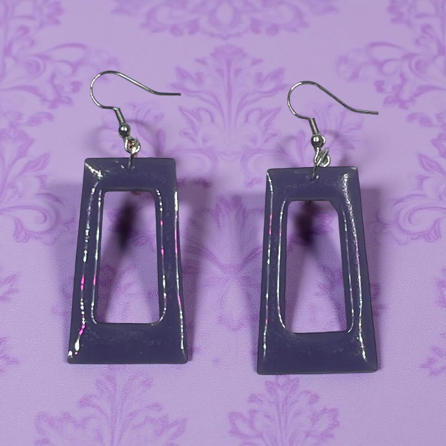 Description: These dark pastel purple rectangle earrings feature an elegant, handcrafted design, perfect for adding a subtle yet sophisticated touch to any outfit. Their versatile style makes them ideal for both casual and formal occasions.