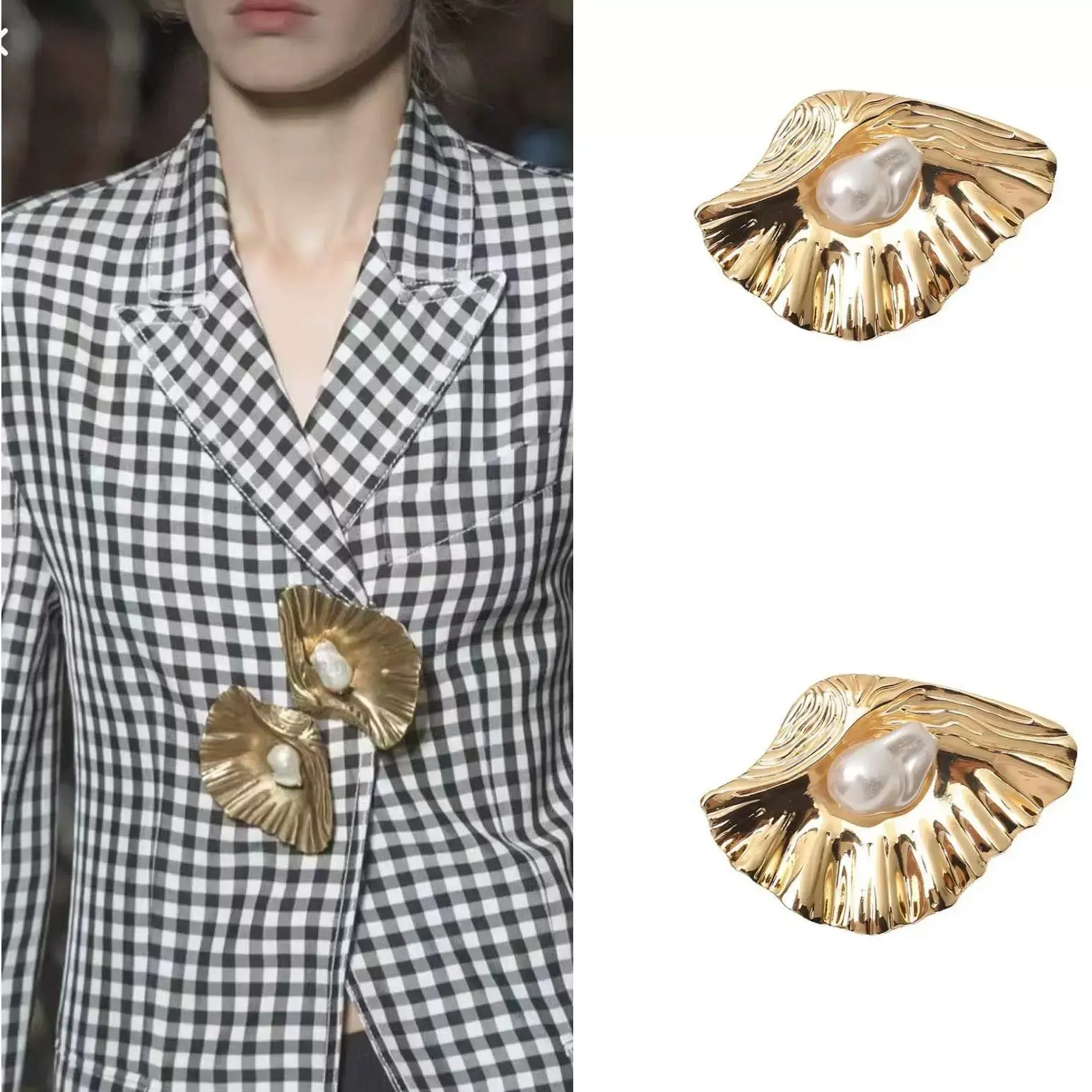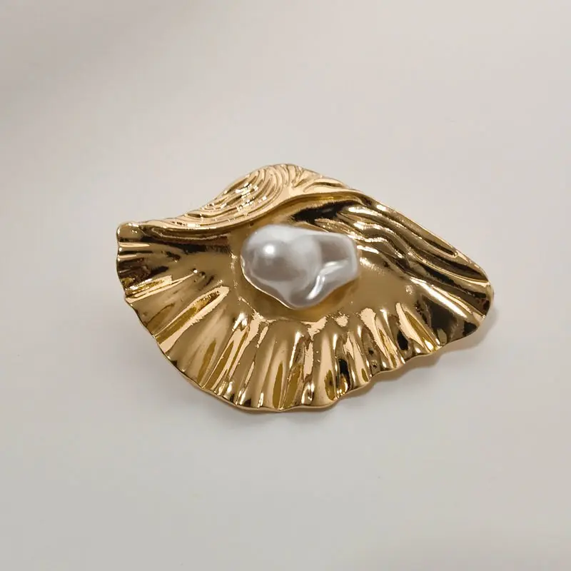 French Vintage High-End 3D Metal Shell Brooch, Unique Design Fashion Accessory, Jacket Flower Pin, Stylish Clothing Embellishment