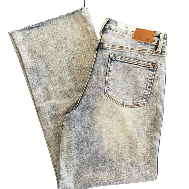 Judy blue high rise light mineral wash raw he wide leg jeans 15/32