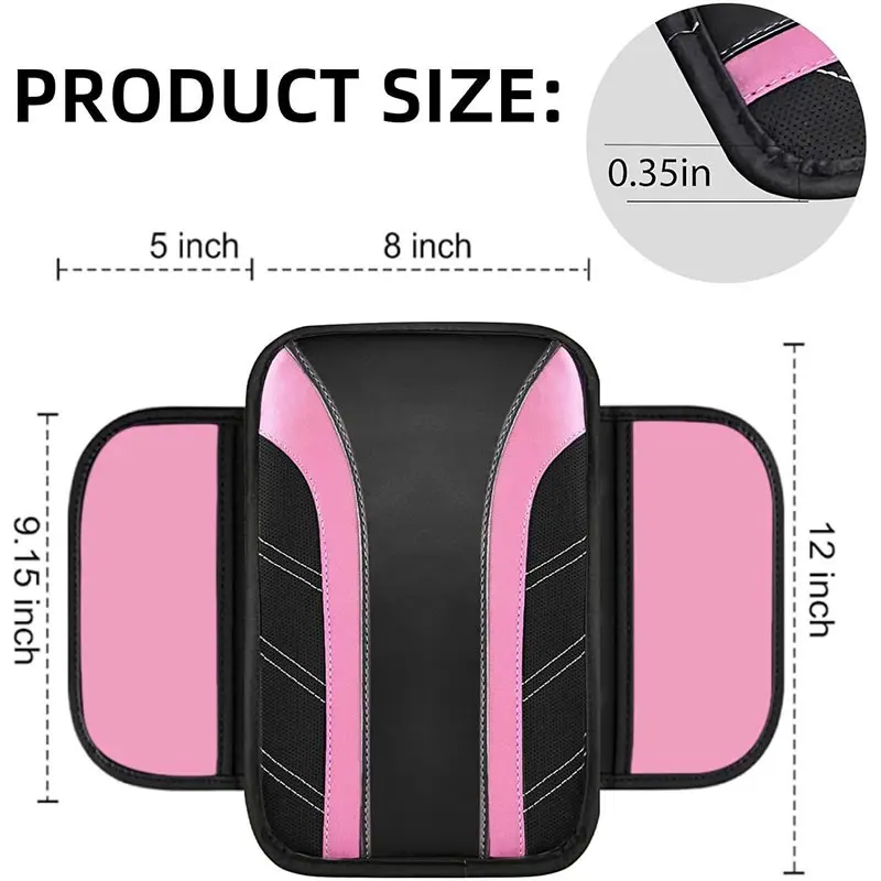 6Counts Car Interior Accessories Set: Sporty PU Leather Steering Wheel Cover (14.5-15 inch Universal), Microfiber PU Leather Car Console Cover, Seatbelt Pads, Cup Holder Pads. Suitable for Men and Women, All Seasons.