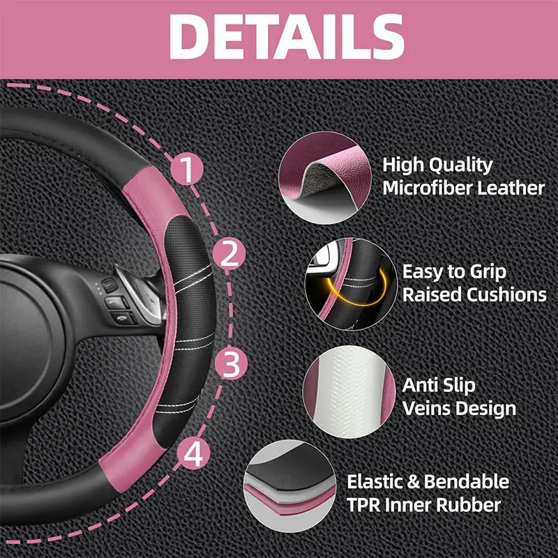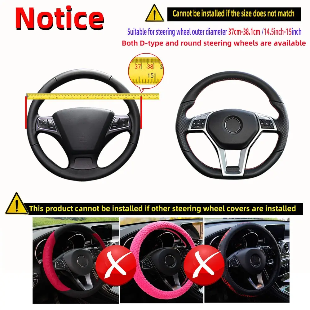 【Universal Fit】The steering wheel cover fits for standard-size steering wheels with diameter 14 1/2 inch to 15 inch(37cm to 39cm)