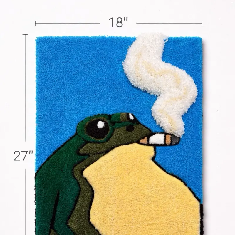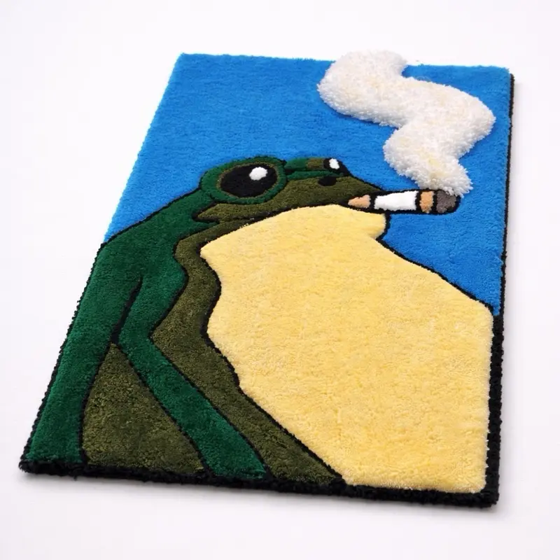This one-of-a-kind rug features a bold frog design with a raised 3D smoke detail that adds texture and depth, making it a true statement piece for any room.