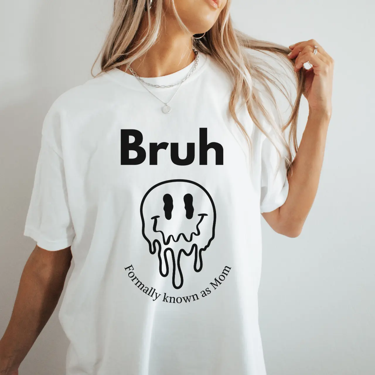 Lightweight attitude meets lived-in softness. This garment-dyed tee carries a relaxed, relaxed fit and a soft hand that deepens with every wash. The front print — a dripping skull beneath the bold word “Bruh” and the small caption “Formerly known as Mom” — blends deadpan humor with low-key edge. Wear it around the neighborhood, at coffee runs, or on easy weekends when sarcasm and comfort are both required. The substantial cotton body and tubular knit keep the silhouette clean while the broken-in dye gives each shirt a subtle, vintage fade that feels personal, not manufactured.
