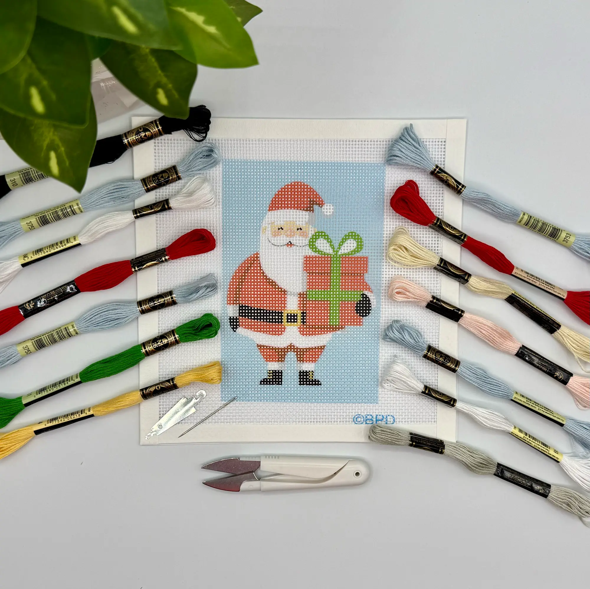 Christmas Santa Needlepoint Kit (holding present)