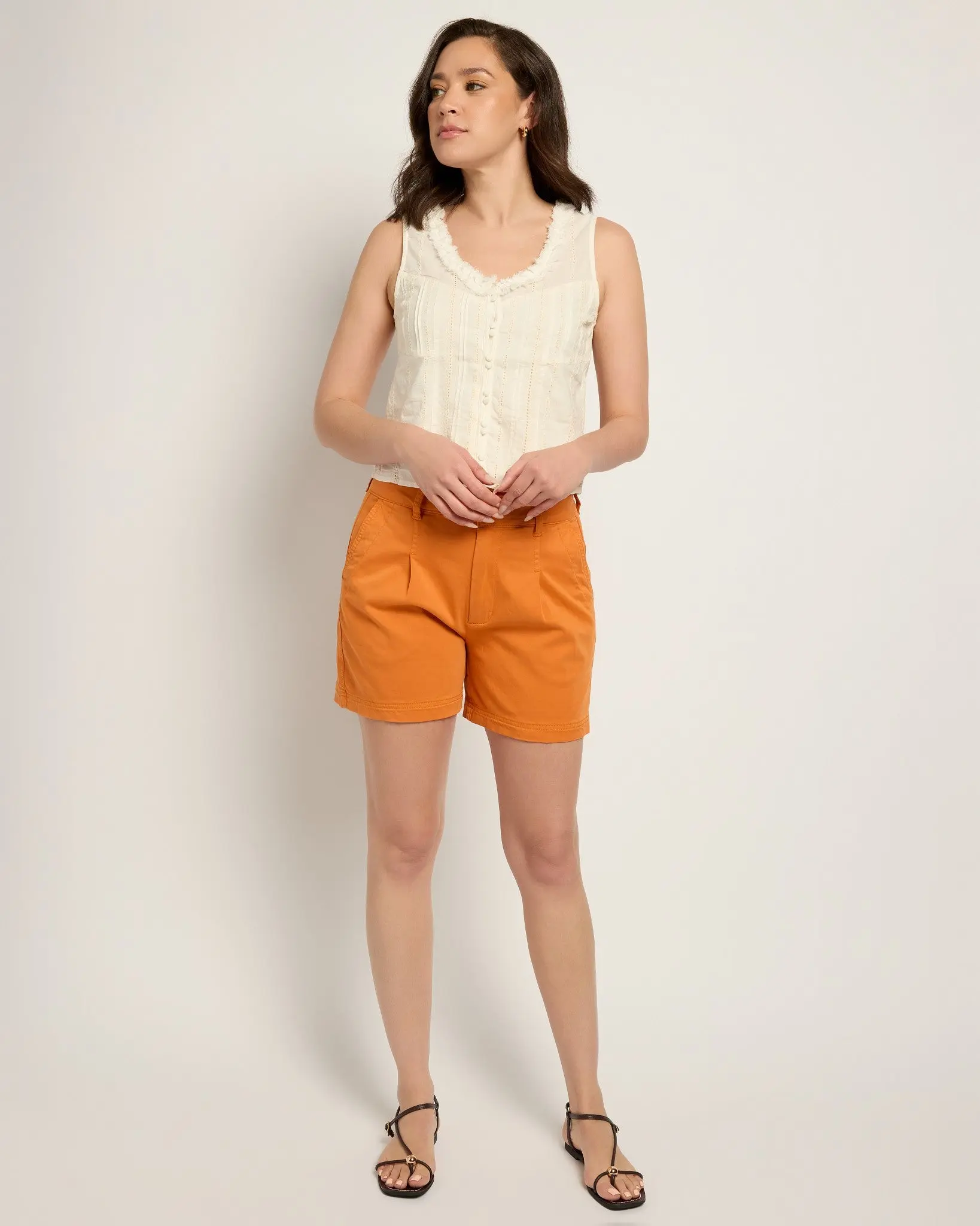 These chic shorts will be a go-to come warmer days! They feature a high-rise and minimal pleating on the front for an elevated look. Made from a comfy blend of cotton-rayon.