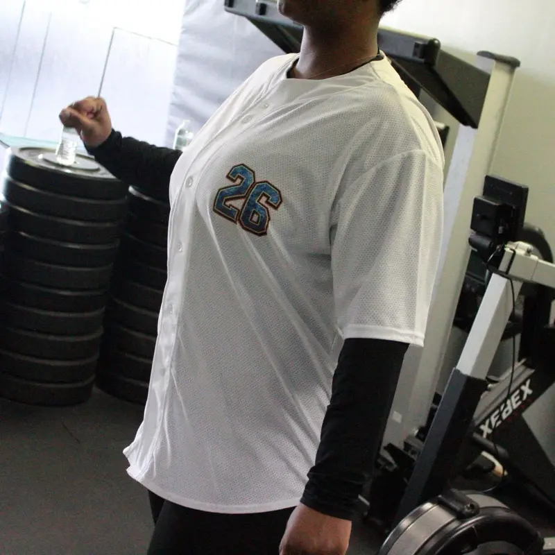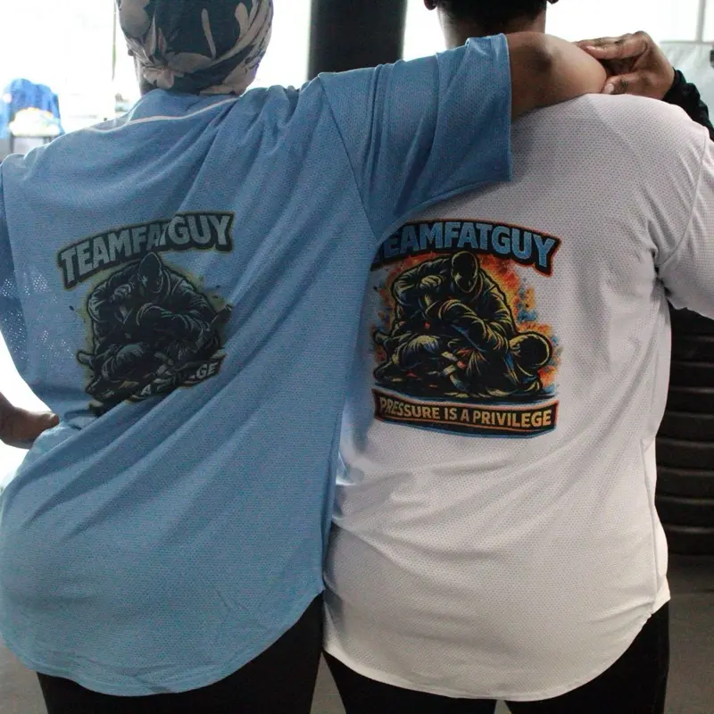 The Teamfatguy Baseball Jersey is a standout piece in your sports wardrobe. It features a crisp white design with the motivational phrase "Pressure is a Privilege." This jersey combines comfort and style, perfect for any baseball enthusiast. The design is both eye-catching and inspiring, making it a great choice for games or casual wear.
