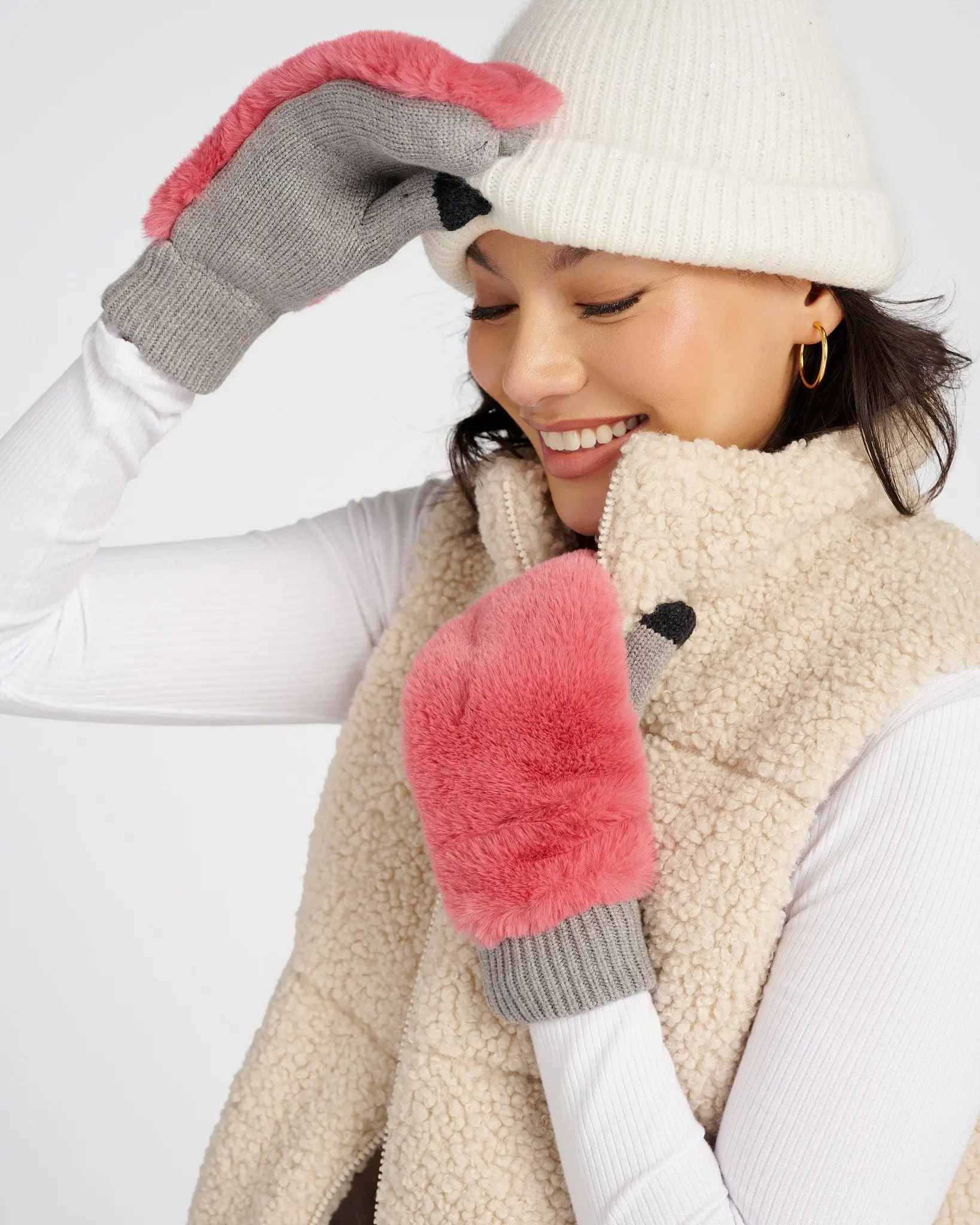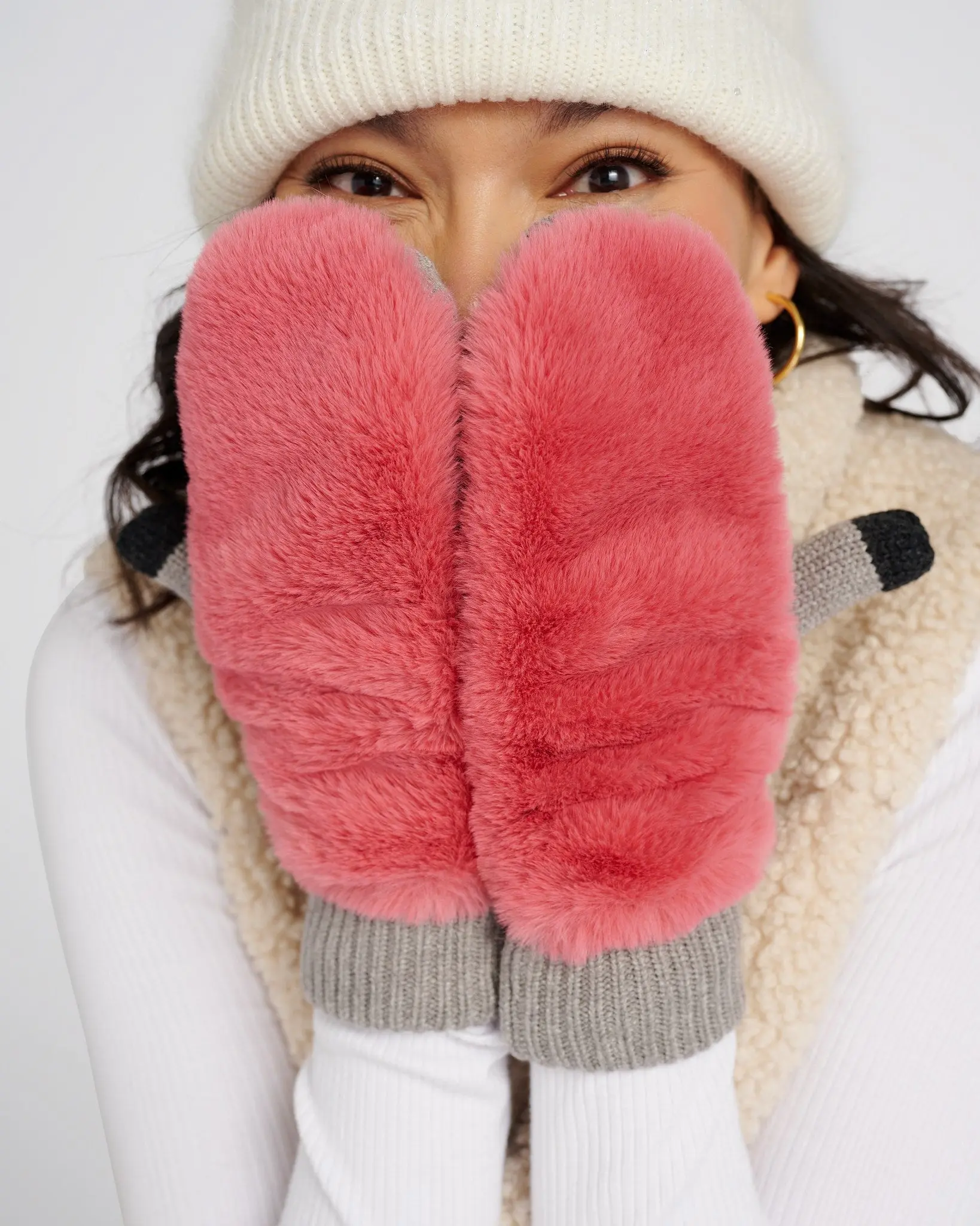 A pair of mittens with an ultra-soft faux fur front? Things just got cozier. One-size and made of a so-soft medium-weight knit.
