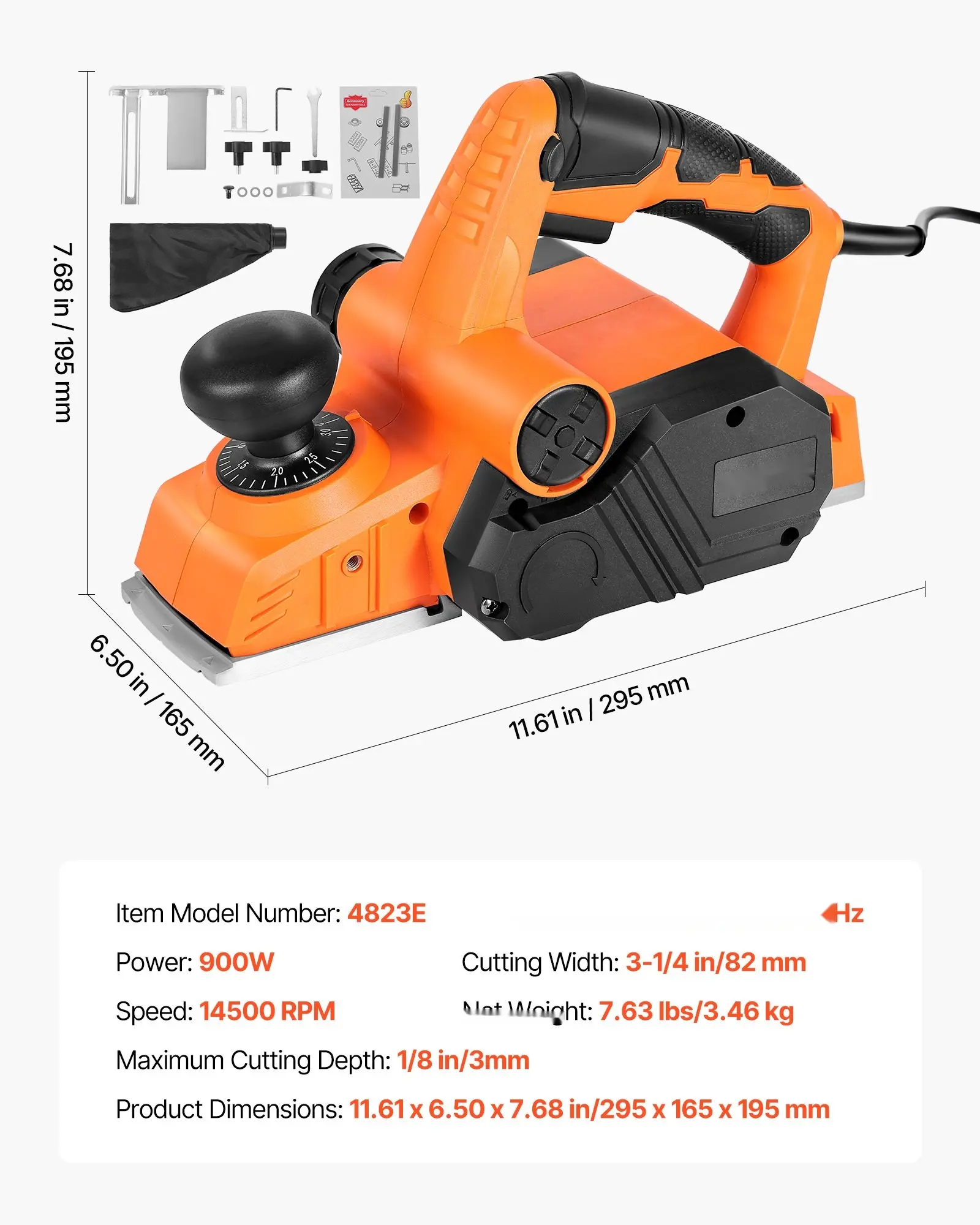 ·Efficient & Precise Cutting: Powered by a strong motor, this electric hand planer delivers a maximum cutting width of 3-1/4 in (82 mm) and a cutting depth of 1/8 in (3 mm). It makes fast, precise cuts through wood, saving you time and effort