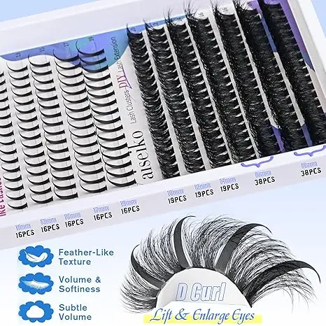Elevate your look with our lash clusters kit, 80D volume cluster eyelash extensions and spiky lash clusters bring you new appearances and new diy lash extension experience,create a captivating manga-inspired eyelash effect.
