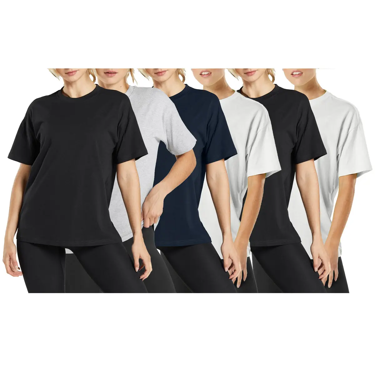 Closure Type:Pull OnSize Type:Normal TypeMaterial:Polyester,Cotton,SpandexWashing Instructions:Machine WashableFit:Loose-FittingSeason:Spring,SummerSleeve Type:Normal TypeSleeve length: short sleeveClothing Length:MediumNeckline:Crew NeckOccasion:CasualQuantity Per Pack:6Pattern:Plain