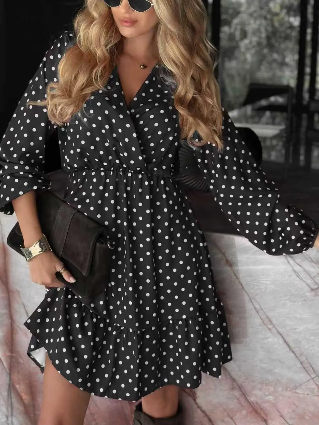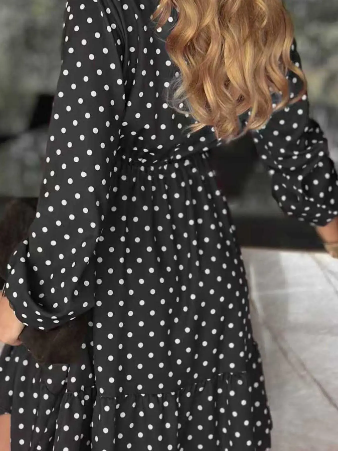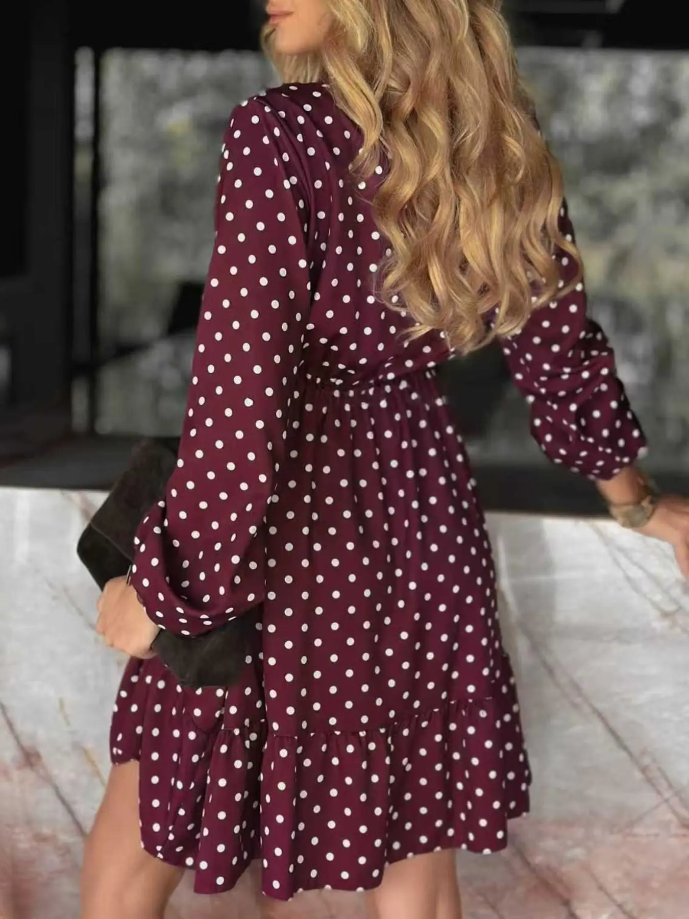 Polka Dot Dress French Sweet V Neck Long Sleeve Midi Tight Waist Women's Clothing, Stylish and Comfortable Design for Daily Wear