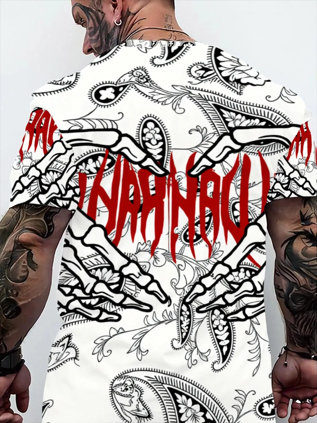 Trendy Printed Short Sleeve T-Shirt, Men's Fashion Casual Top, White Graffiti Pattern Design, Simple All-Match Style, New Summer Men's Clothing