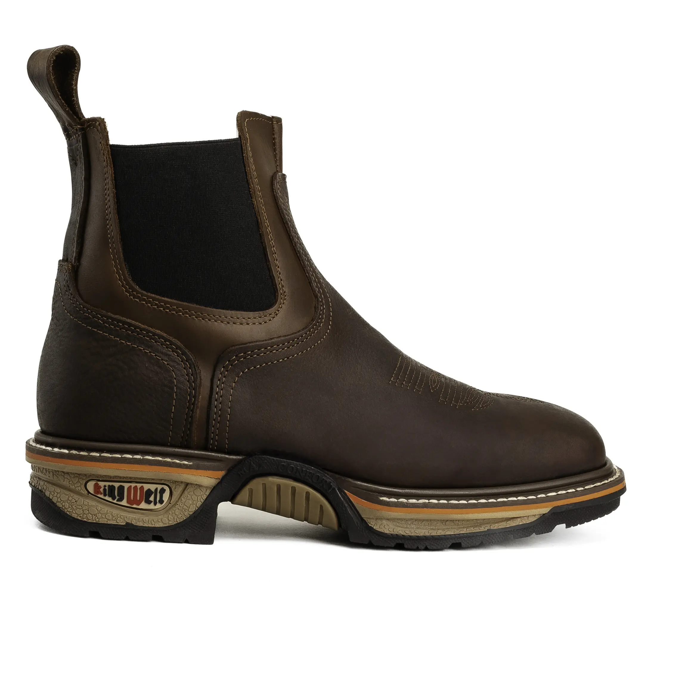 The King Welt 3161 boots are crafted for work environments. The composite toe offers robust protection, while the dual density sole enhances comfort. The pull-up leather design simplifies wear. Ideal for professionals needing reliable footwear.