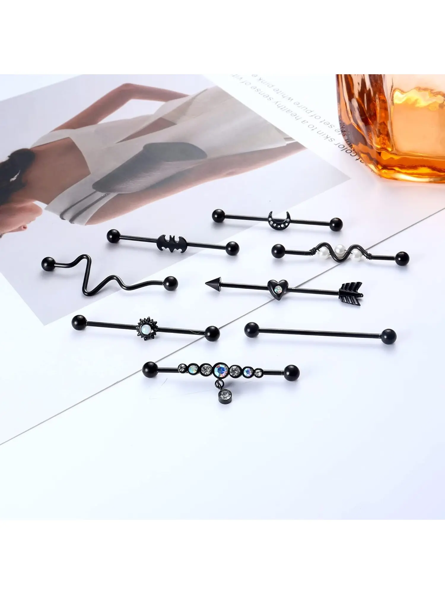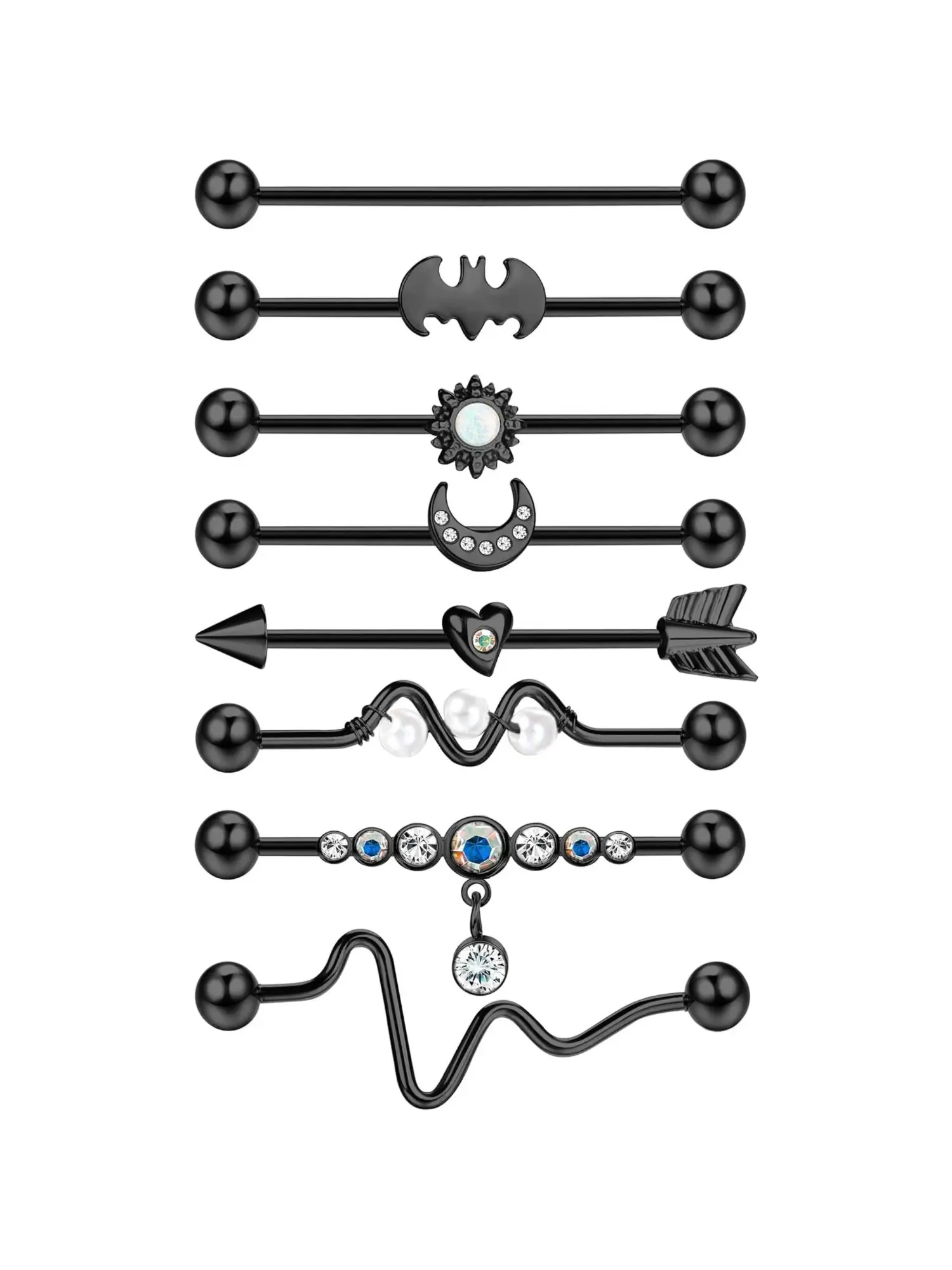 8Pcs 14G Industrial Barbell Earrings Stainless Steel Cartilage Earrings Industrial Body Piercing Jewelry for Women Men