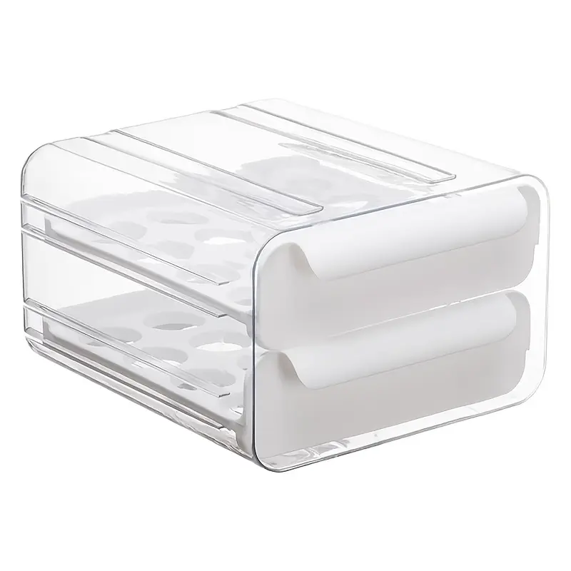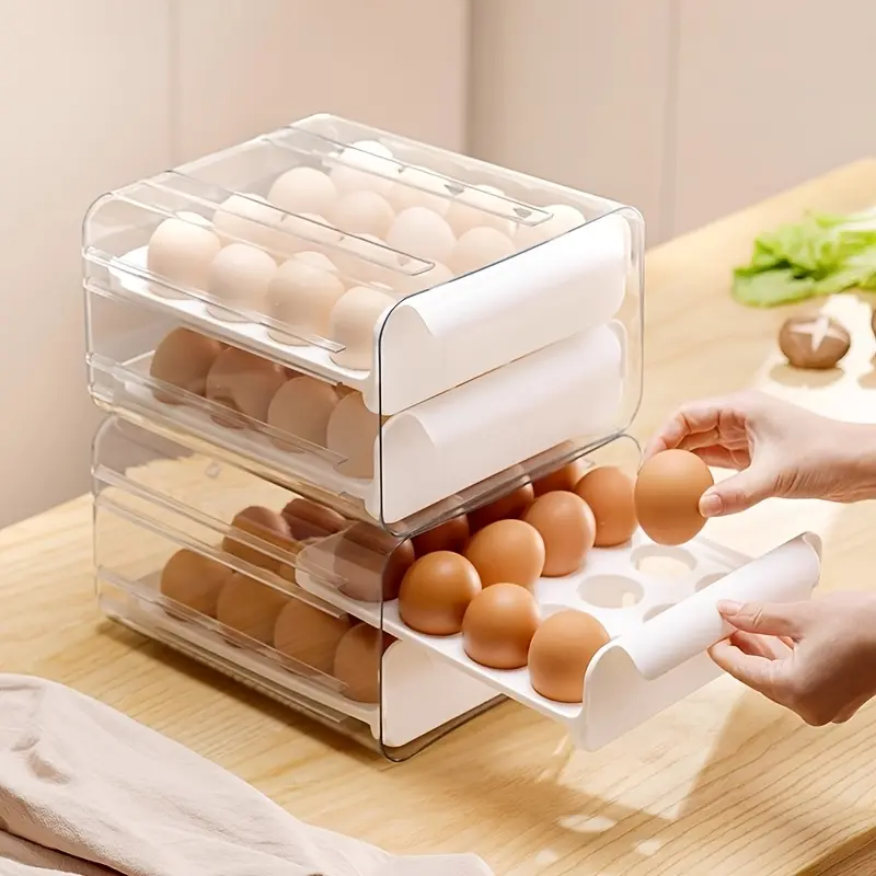 Double-Layer Stackable Design: Features two independent tiers that nest securely on top of each other. This vertical arrangement doubles your egg storage capacity while occupying the same small footprint on your refrigerator shelf.