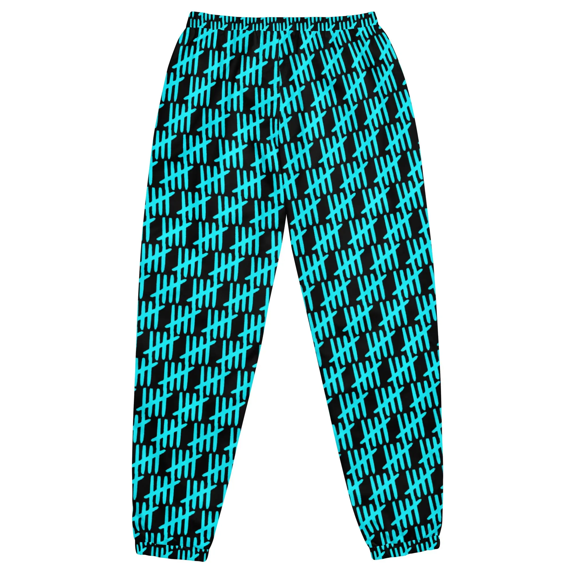 Define the Perimeter. The Halo Track pants are a technical deployment for those who demand total utility and a sharp, tech-noir aesthetic. Featuring an all-over tally-mark iconography in electric teal, these pants are engineered for high-visibility maneuvers and seamless transitions between environments. In the Hyperphanta mindset, every mark represents progress. Wear them as your primary vanguard plating for high-output missions and street-level deployments.