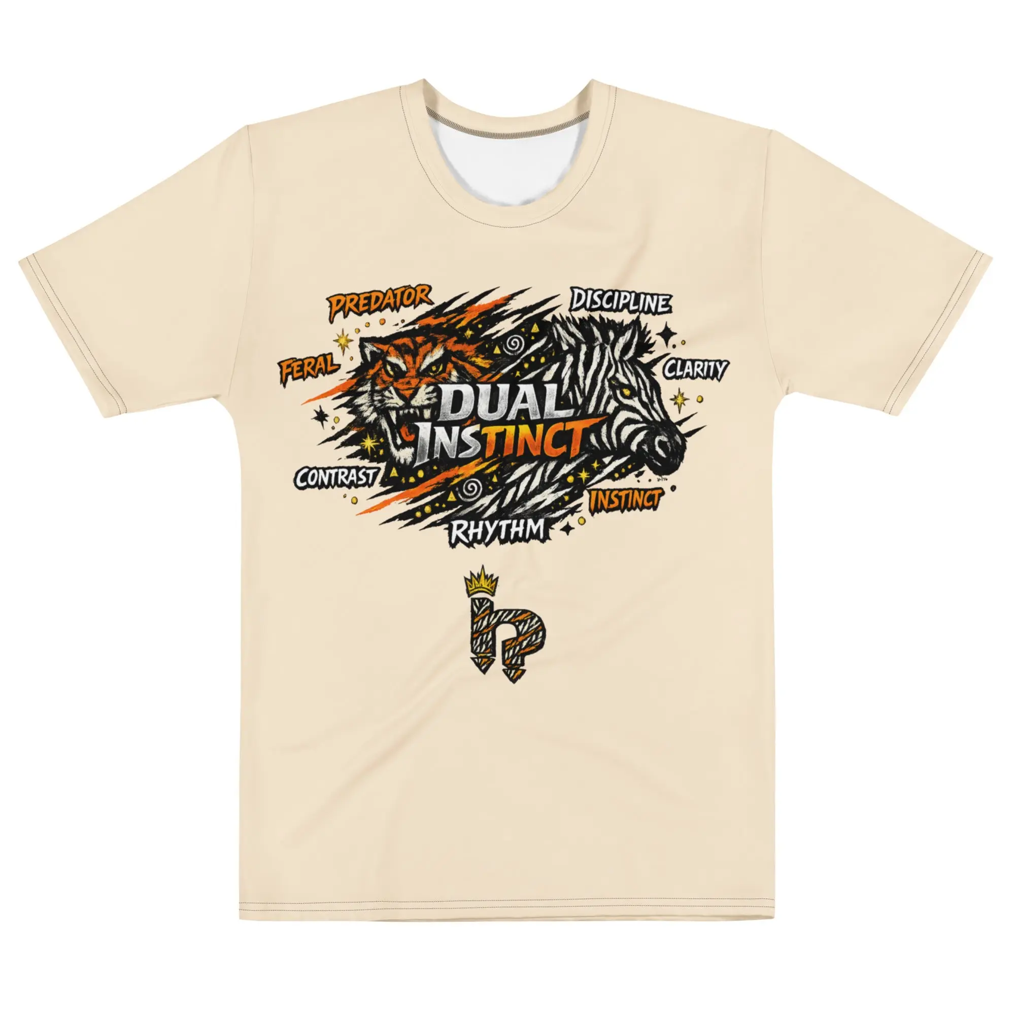 Master the Standard. The Dual Instinct T-shirt is a high-frequency technical deployment designed for those who navigate their environment with effortless intent. Featuring a striking, high-contrast graphic on a clean sand base, this garment is engineered for a consistent regular fit that doesn't compromise on presence. In the Hyperphanta mindset, your attire should facilitate your flow—wear it as your primary tactical layer for urban exploration or creative deep-dives.