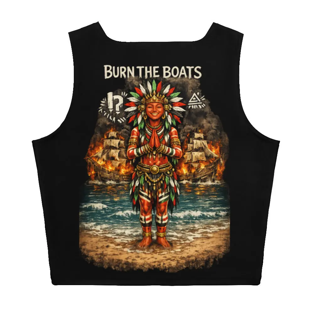 Point of No Return. The Burn The Boats crop is a technical deployment for the resolute. Featuring a vivid, high-stakes graphic of the ultimate commitment to the mission, this garment is designed for those who have eliminated retreat from their vocabulary. In the Hyperphanta mindset, progress is inevitable once the exits are closed. Wear it as your primary vanguard plating for every mission that demands 100% presence.