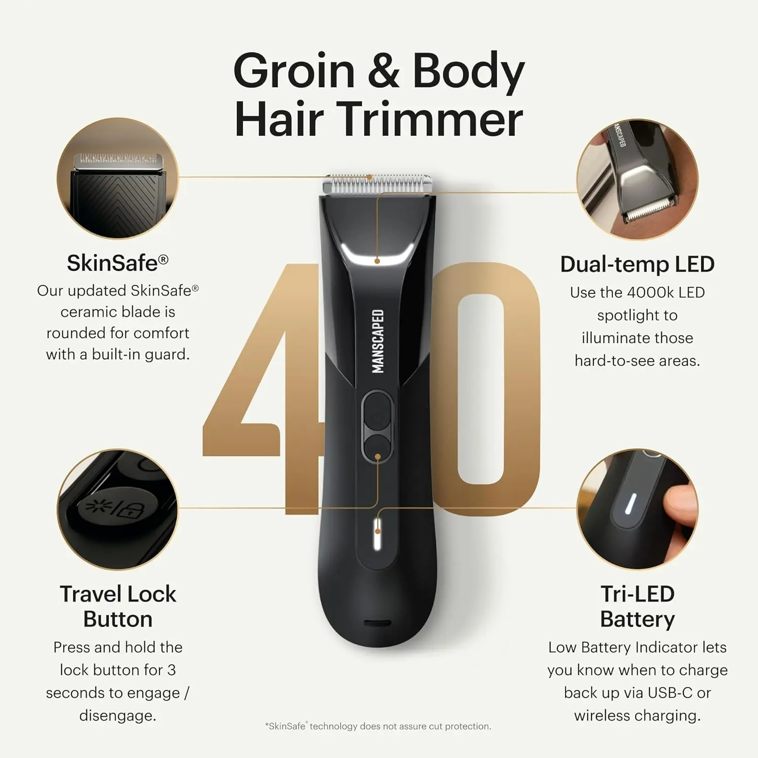 MANSCAPED® The Lawn Mower® 4.0 PRO - Groin & Body Hair Trimmer, Updated SkinSafe® Trimmer Blade, Waterproof Wet/Dry Groomer, USB-C & Wireless Charging Compatible, Men’s Ball Shaver with Travel Lock