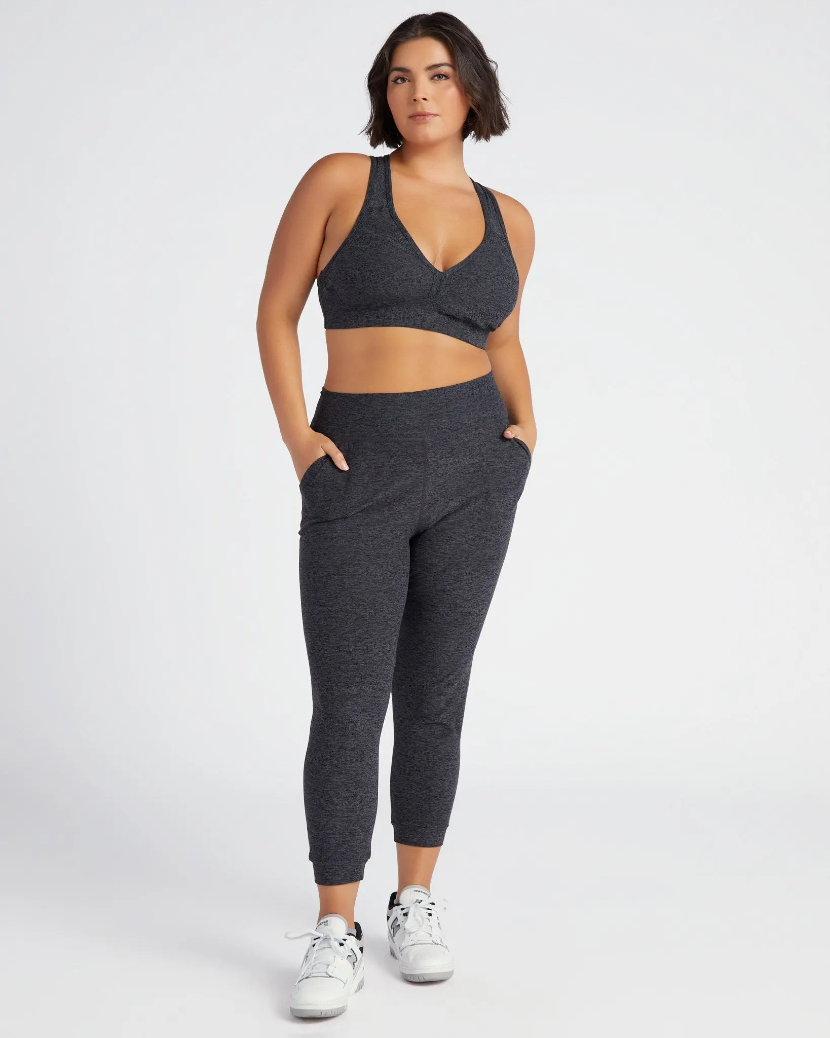 These joggers are so comfy you'll want to wear them 24/7! Relaxed fit in a midi length with a high-rise waist and two pockets. Made in the USA of a so-soft and stretchy performance fabric you can lounge or lunge in.