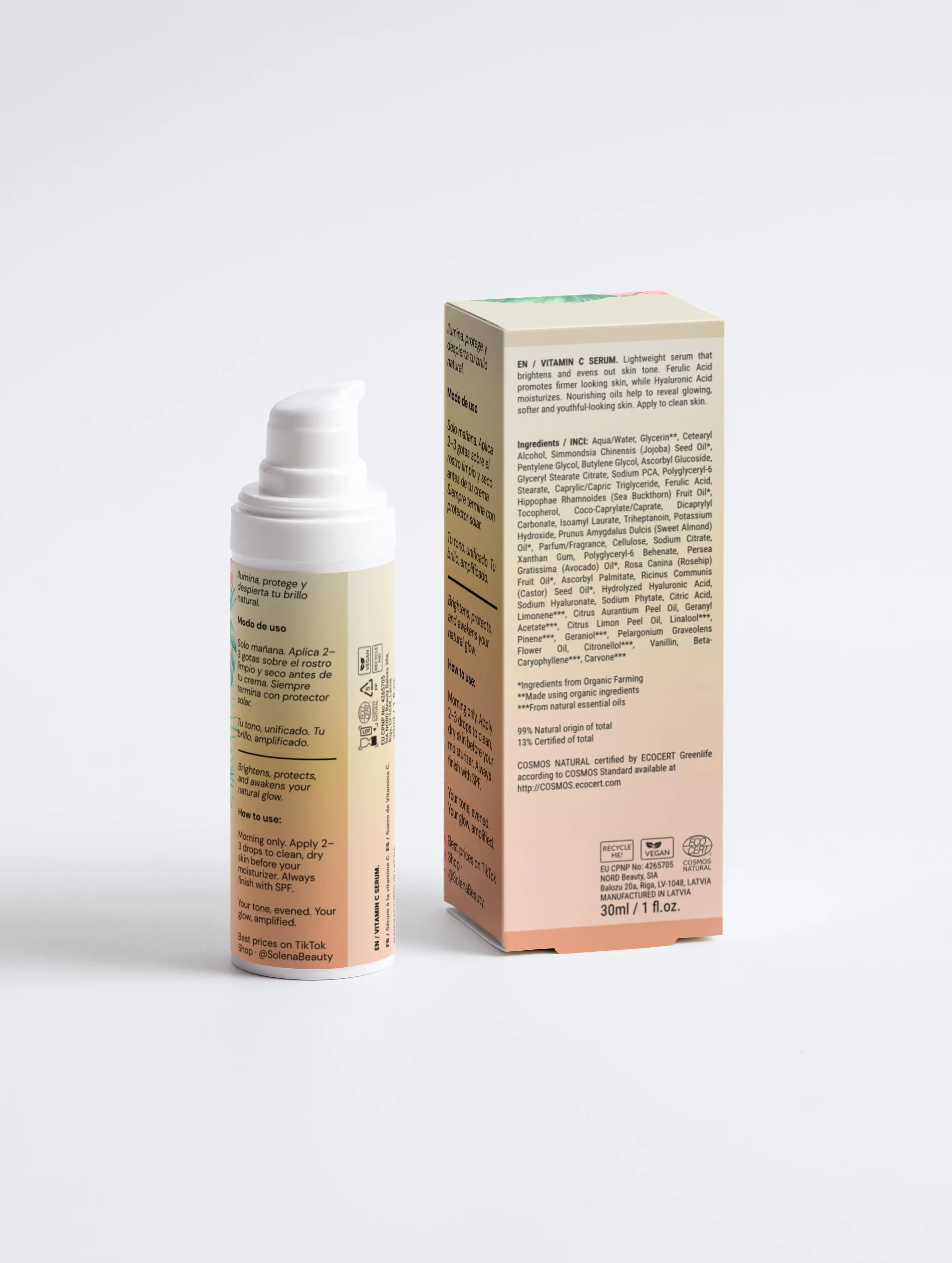 Product Description: Lightweight serum that brightens and evens out skin tone. Ferulic Acid promotes skin firmness, while Hyaluronic Acid boosts skin moisture levels. Nourishing oils soften the skin to reveal glowing and youthful looking skin. Apply to clean skin.