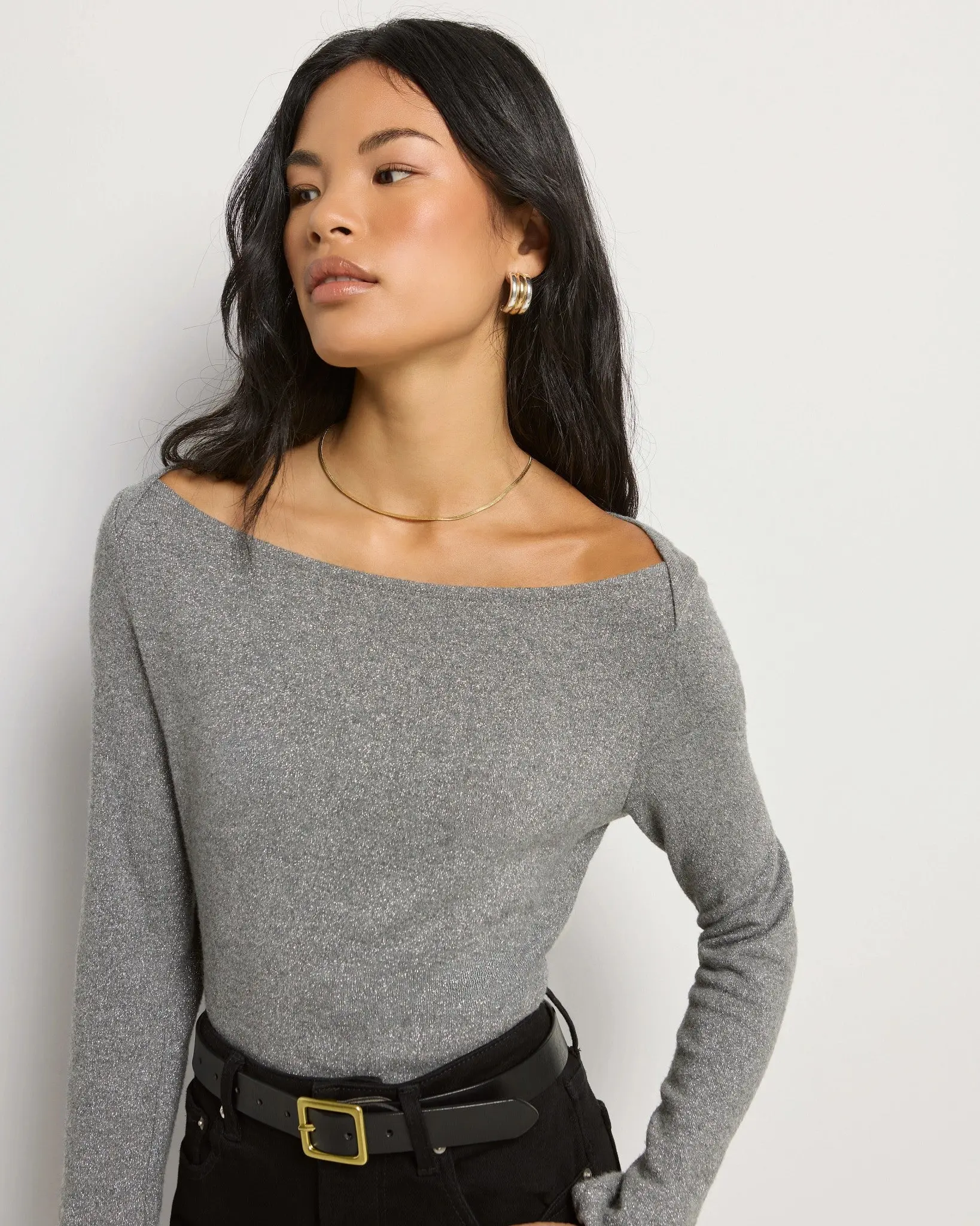 Sleek. Subtle. Slightly unexpected. With its flattering boat neckline, soft stretch knit, and subtle overlap detail at the collar, this top makes your everyday a little more polished with zero effort required.