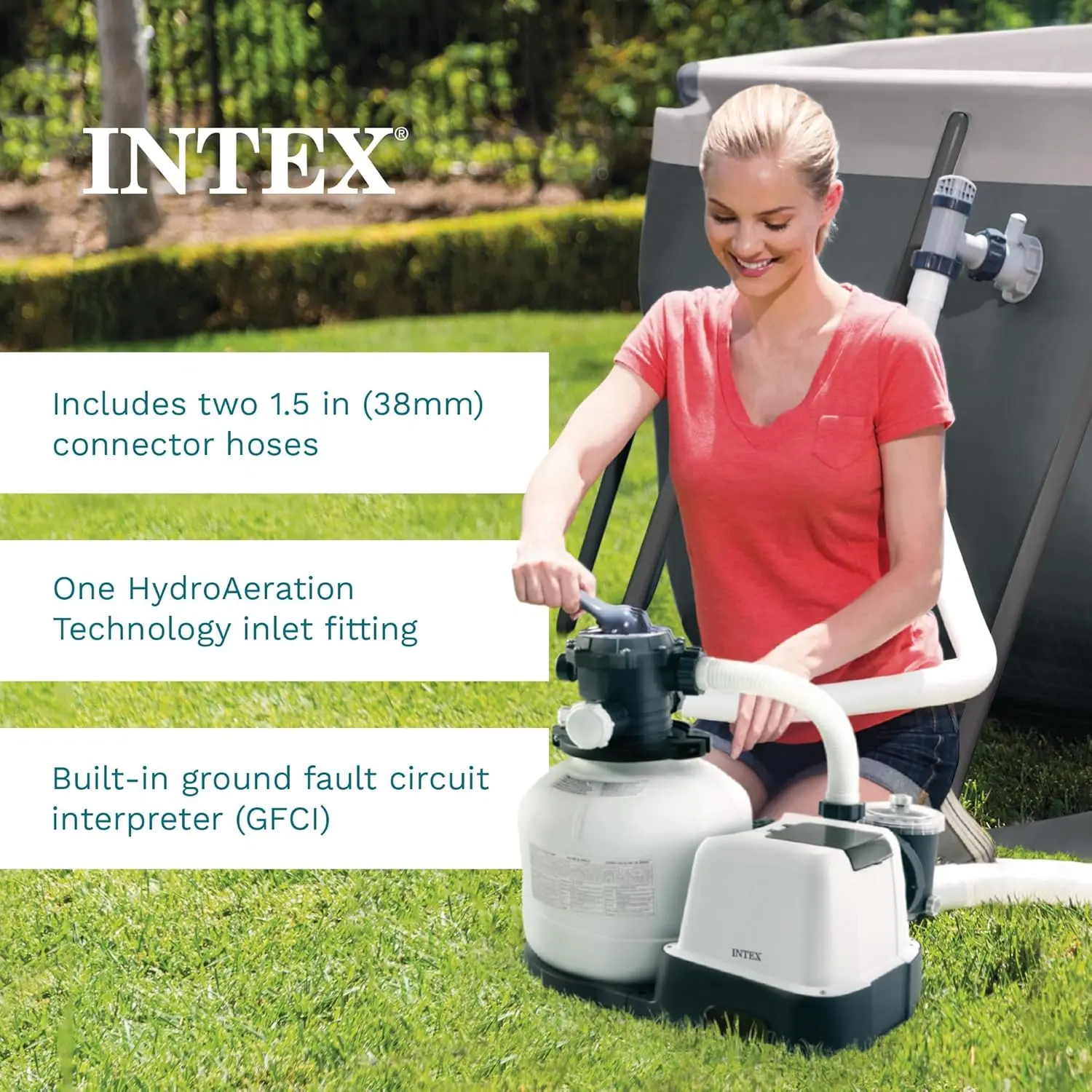 INTEX 3,000 GPH Krystal Clear Sand Filter Pump for Above Ground Pools, Swimming Pool Pump with Automatic Timer - Improved Circulation, Filtration, & Clarity