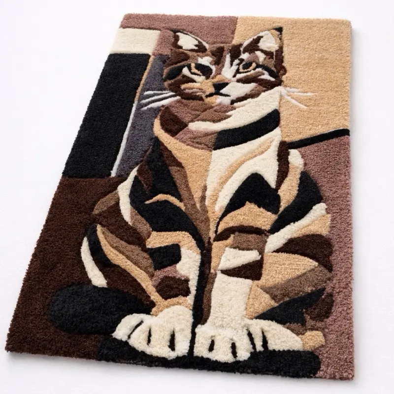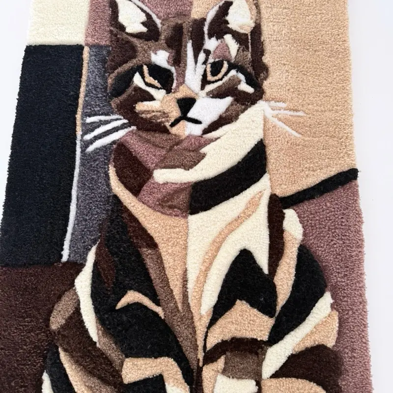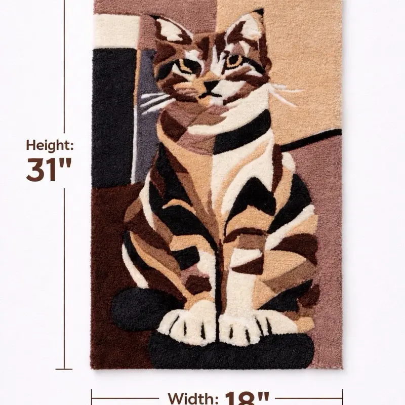 Add a modern and elegant touch to your space with this handmade tufted rug featuring a beautiful artistic cat design in neutral tones 🐱🤎