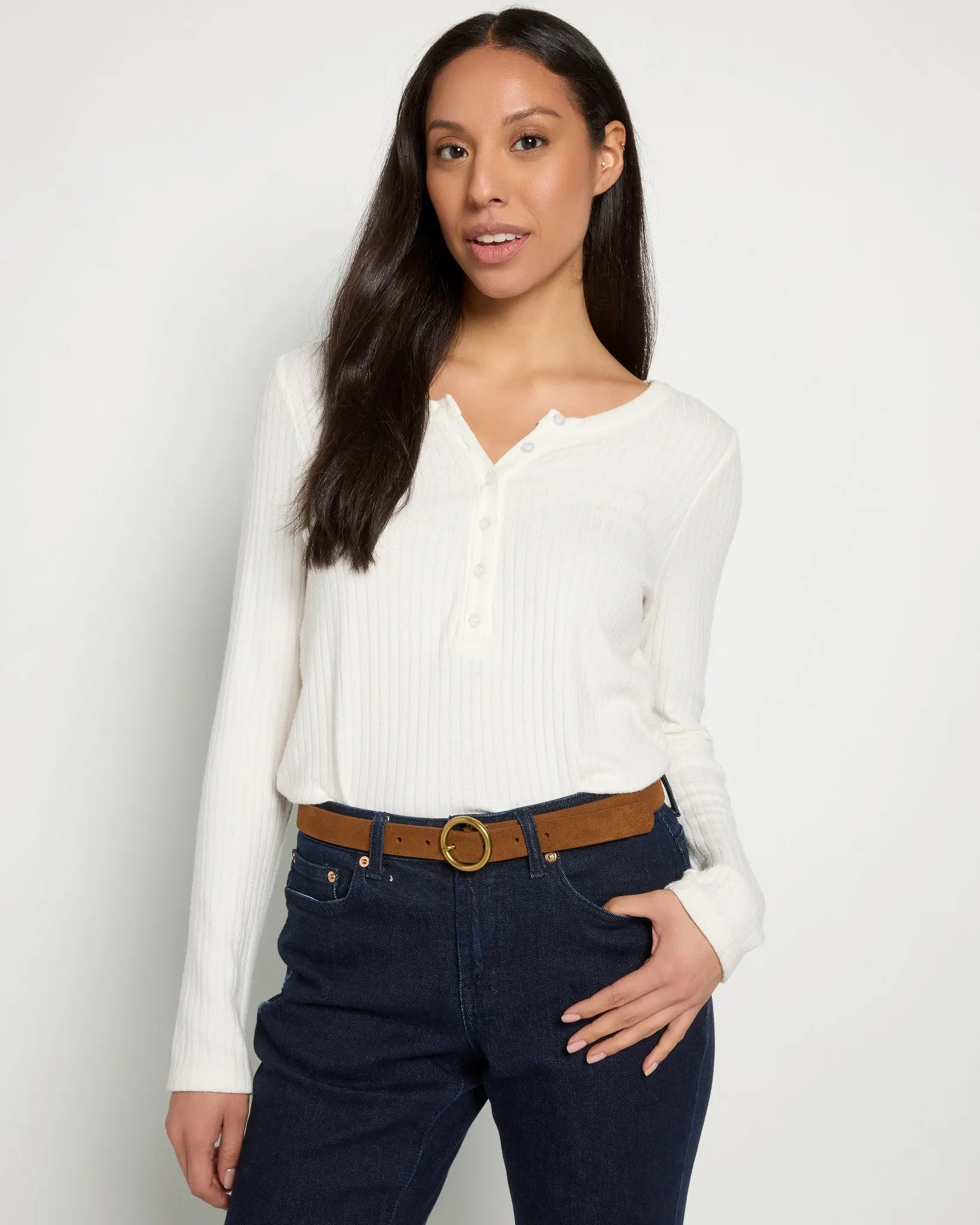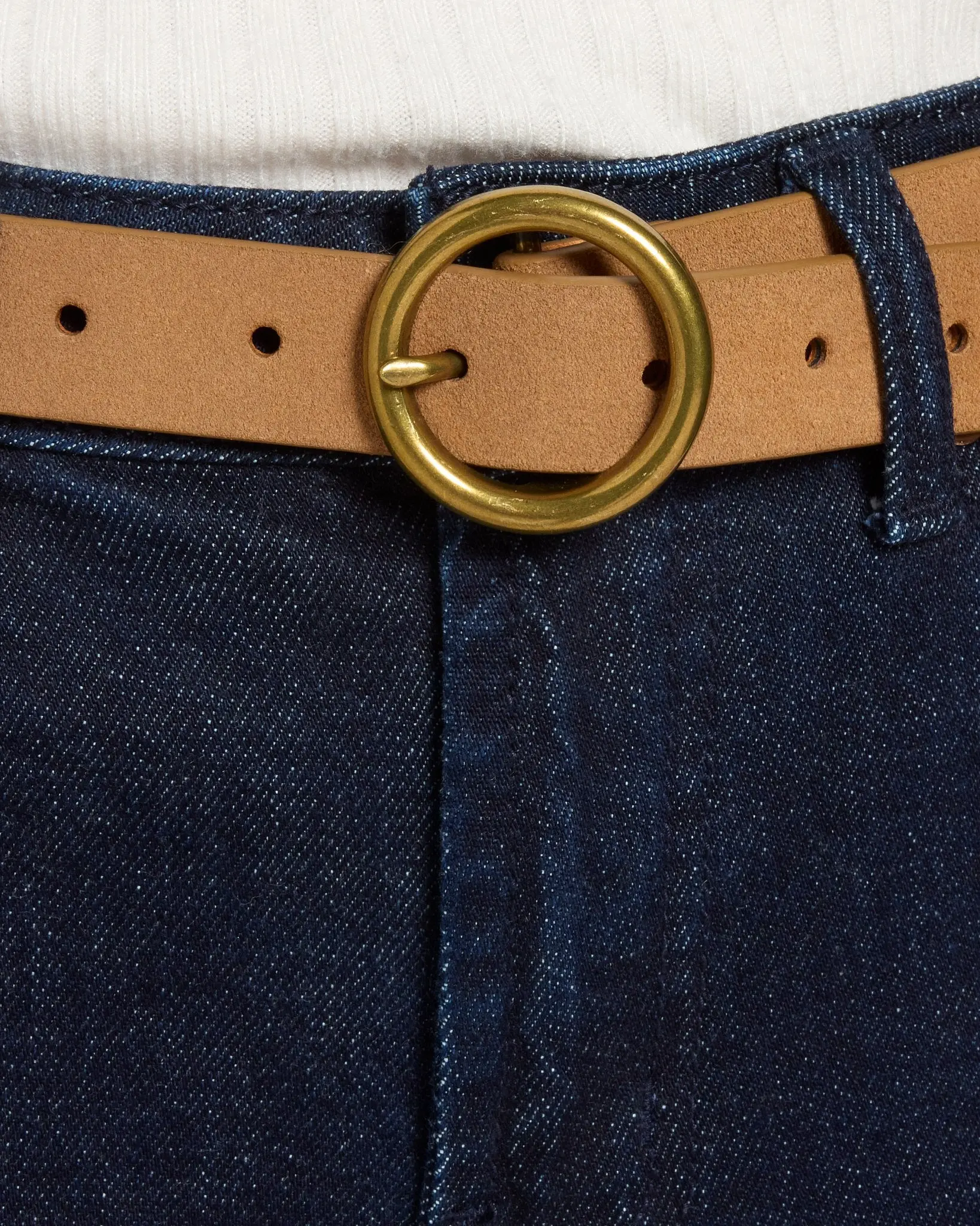 Finish your look with a frontier flair! This classic suede belt has a soft, nappy finish crafted from genuine leather and fastens with a simple round buckle.