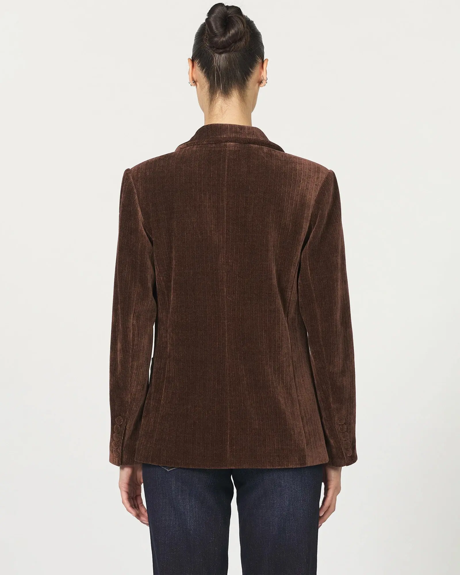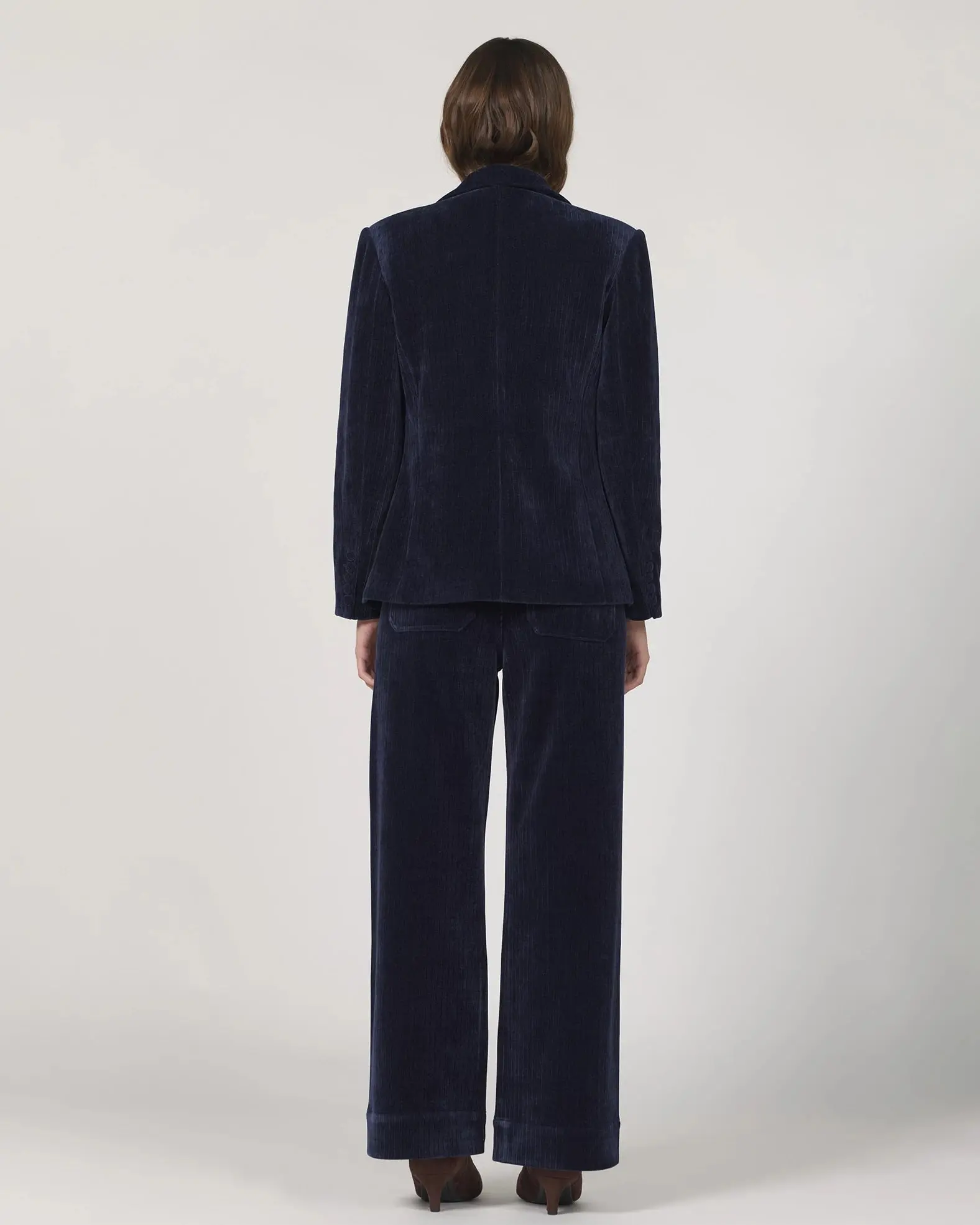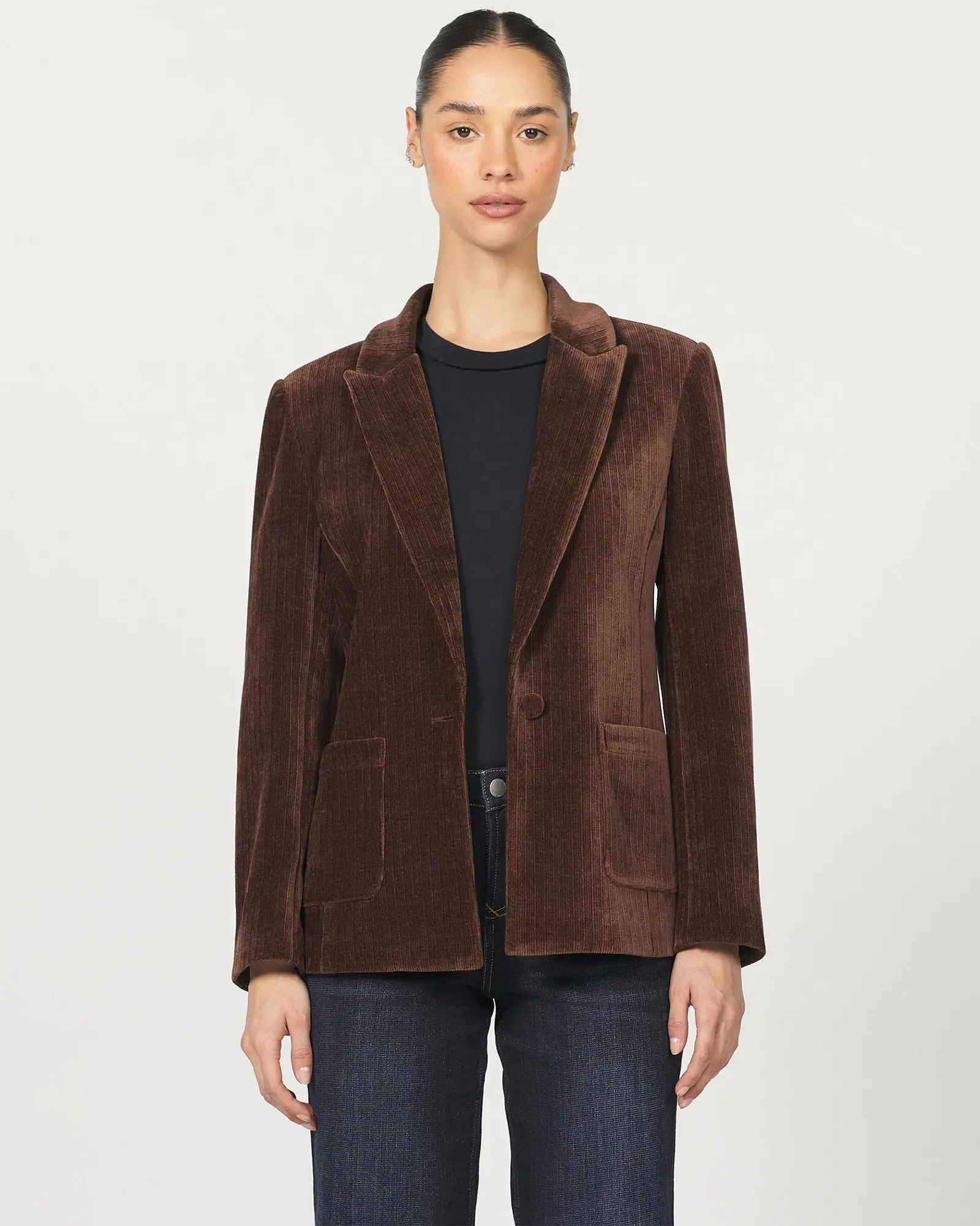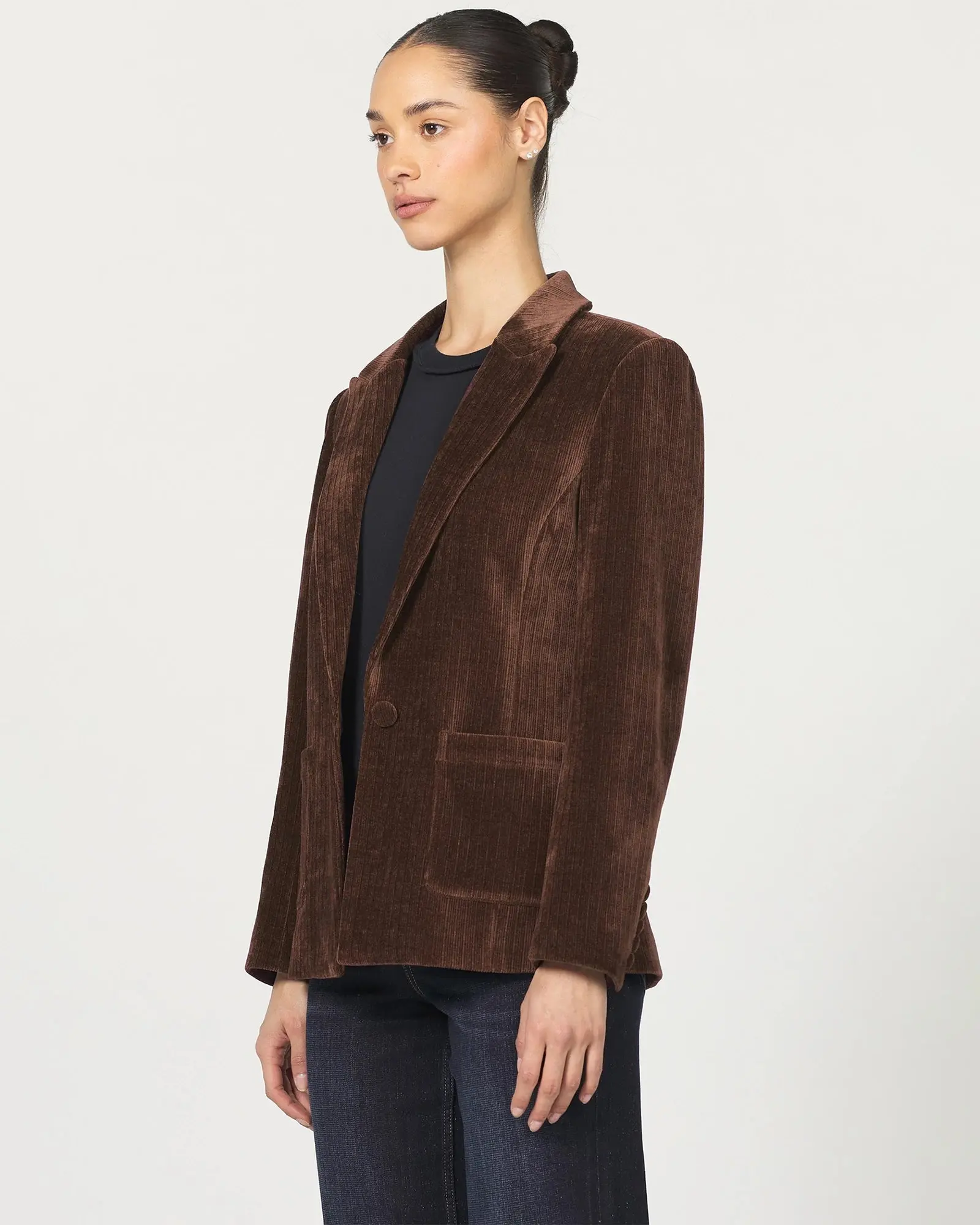 Beautifully boxy, this blazer highlights a retro-chic appeal in a corduroy material with a subtle sheen. It's tailored with a single-button front closure with notched lapels and front pockets. Naturally comfy with a hint of stretch.
