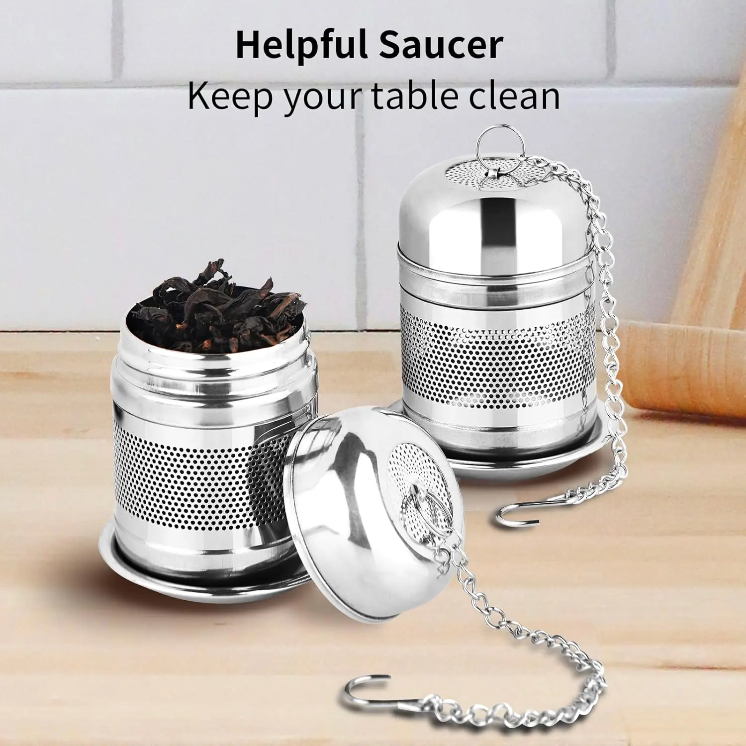 PACKAGE INCLUDED: Comes with 2 tea infusers (1.57” diameter, 2.36” height) and 2 drip trays to keep surfaces clean after use. Easy to clean by hand or dishwasher and ideal as a gift for tea lovers.