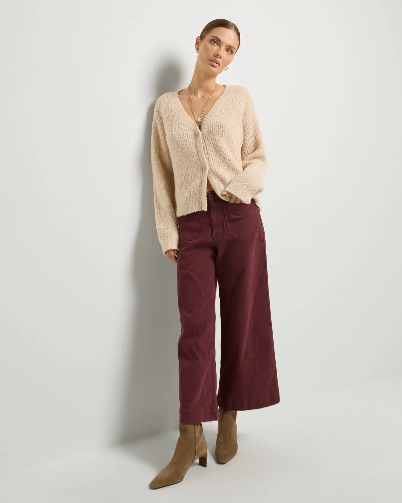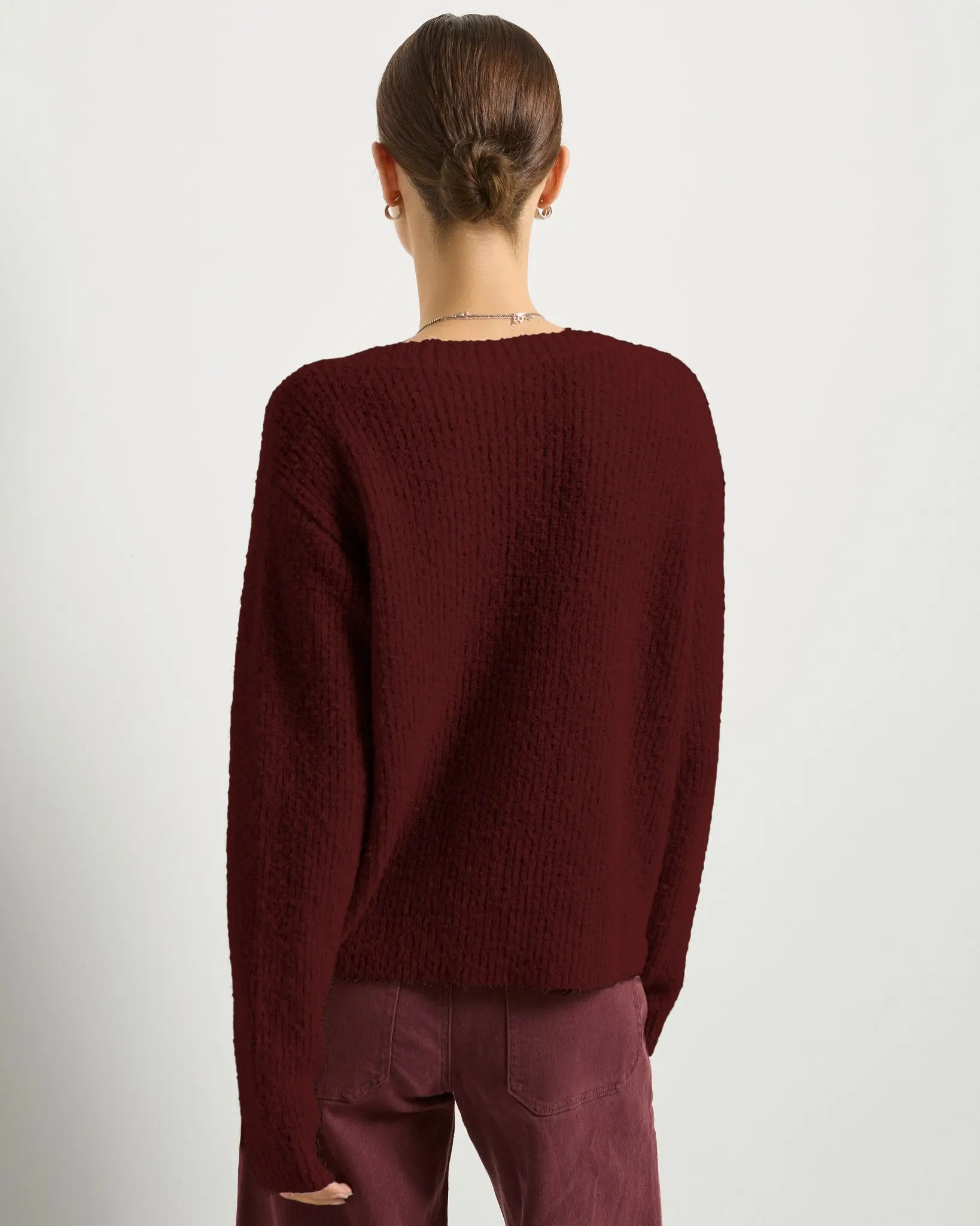Soft texture. Easy shape. Total keeper. This button-front cardigan features a cozy ribbed knit with a bit of extra fuzz that makes it feel broken-in from day one. The boxy silhouette and deep V-neckline give it a laidback, layered-up look you’ll love on repeat.