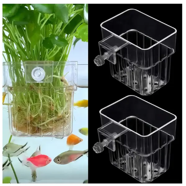 These plant holders are designed to fit snugly on tank edges. They provide a stable base for your aquarium plants. The clear design blends seamlessly with any tank, maintaining a clean look. No more worries about plant stability or tank aesthetics.
