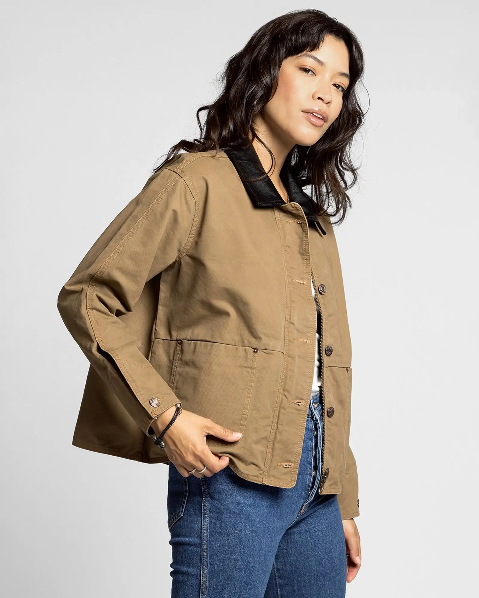 Country, but make it cozy! This classic barn jacket is boxy and comfy with a contrast collar, zip-front and button closure, and handy pockets. Structured from a durable 100% twill with a nearly weather-proof finish.