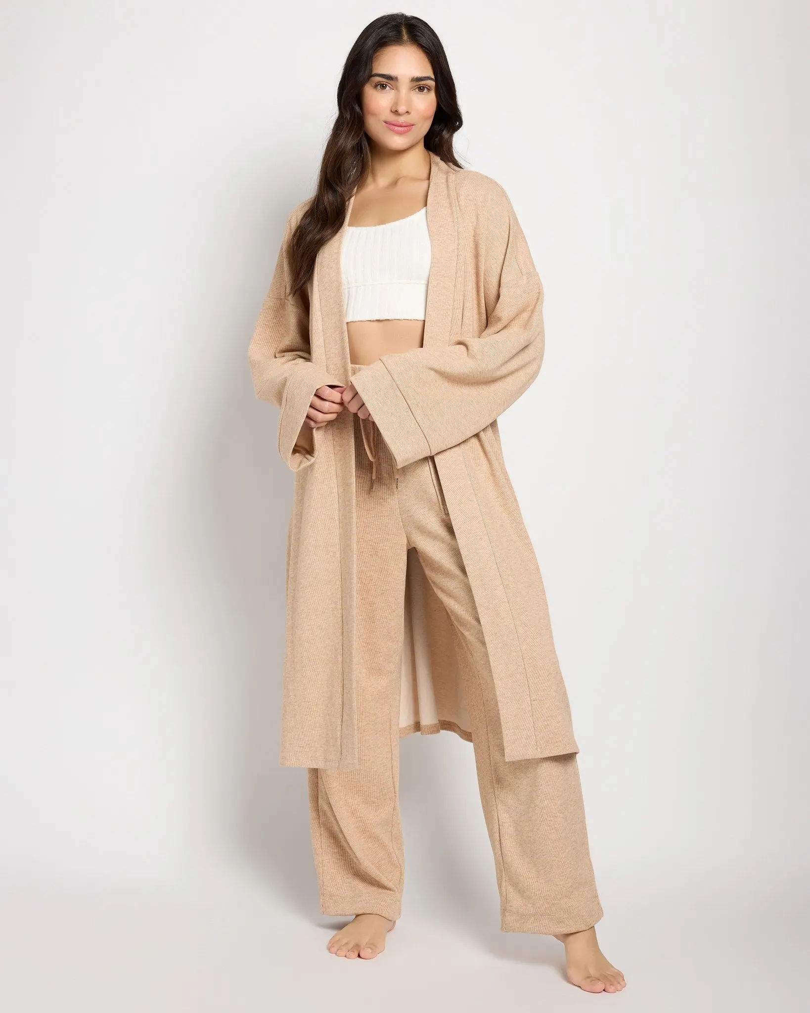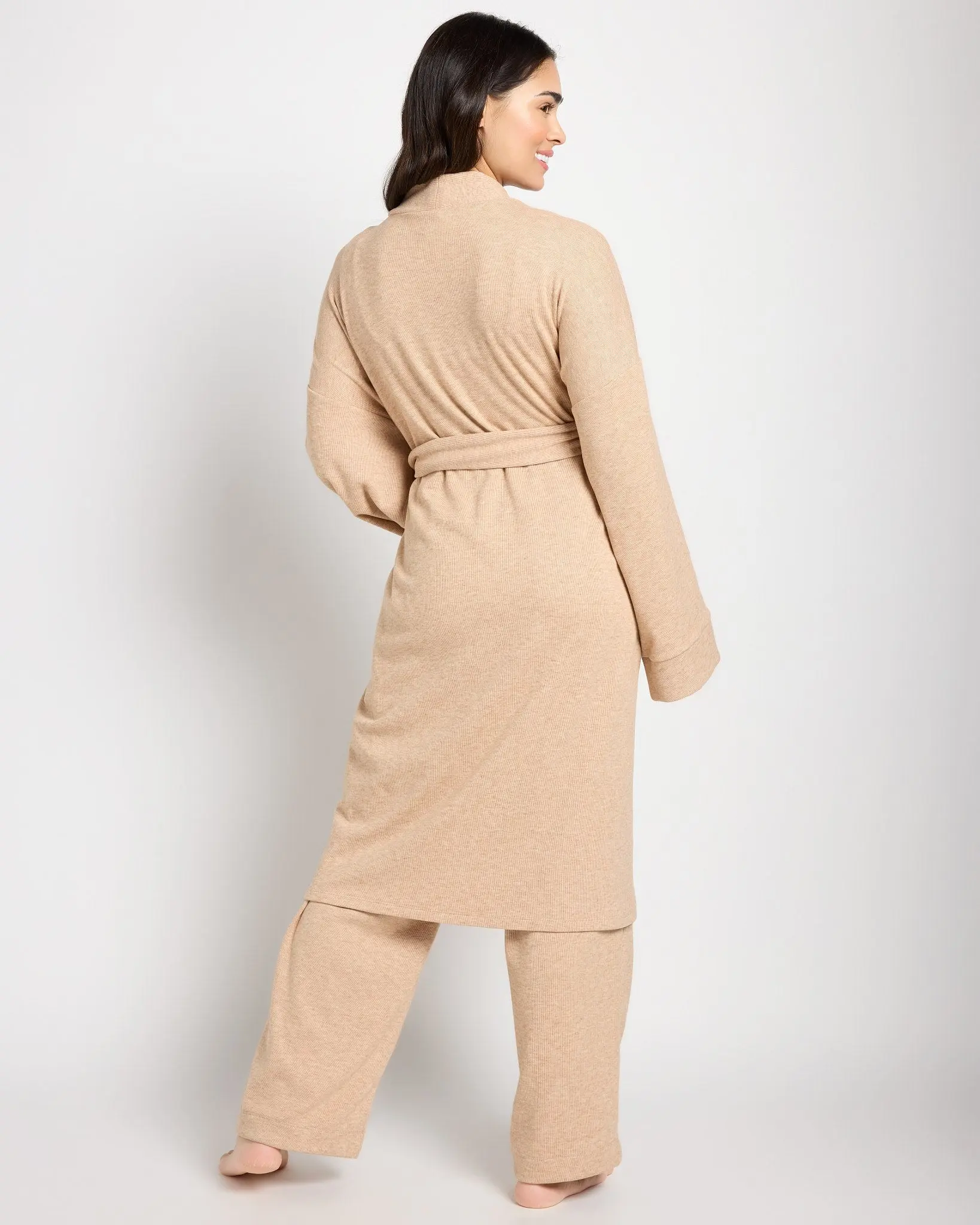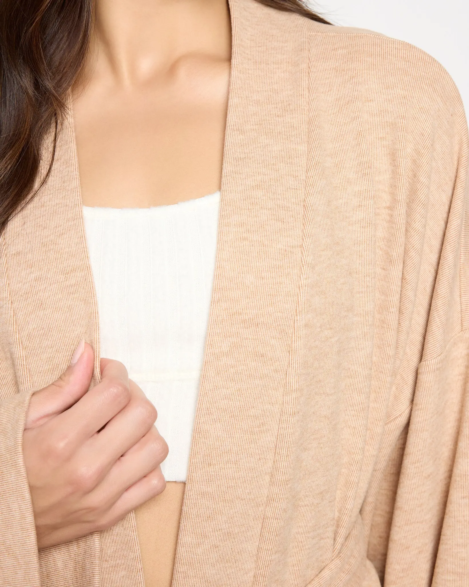 Luxe and lightweight, this cozy robe will make you feel like you're on a staycation! Open front with self-tie belt and roomy sleeves that move with you. Crafted from a soft jersey knit that feels just right—never stuffy.