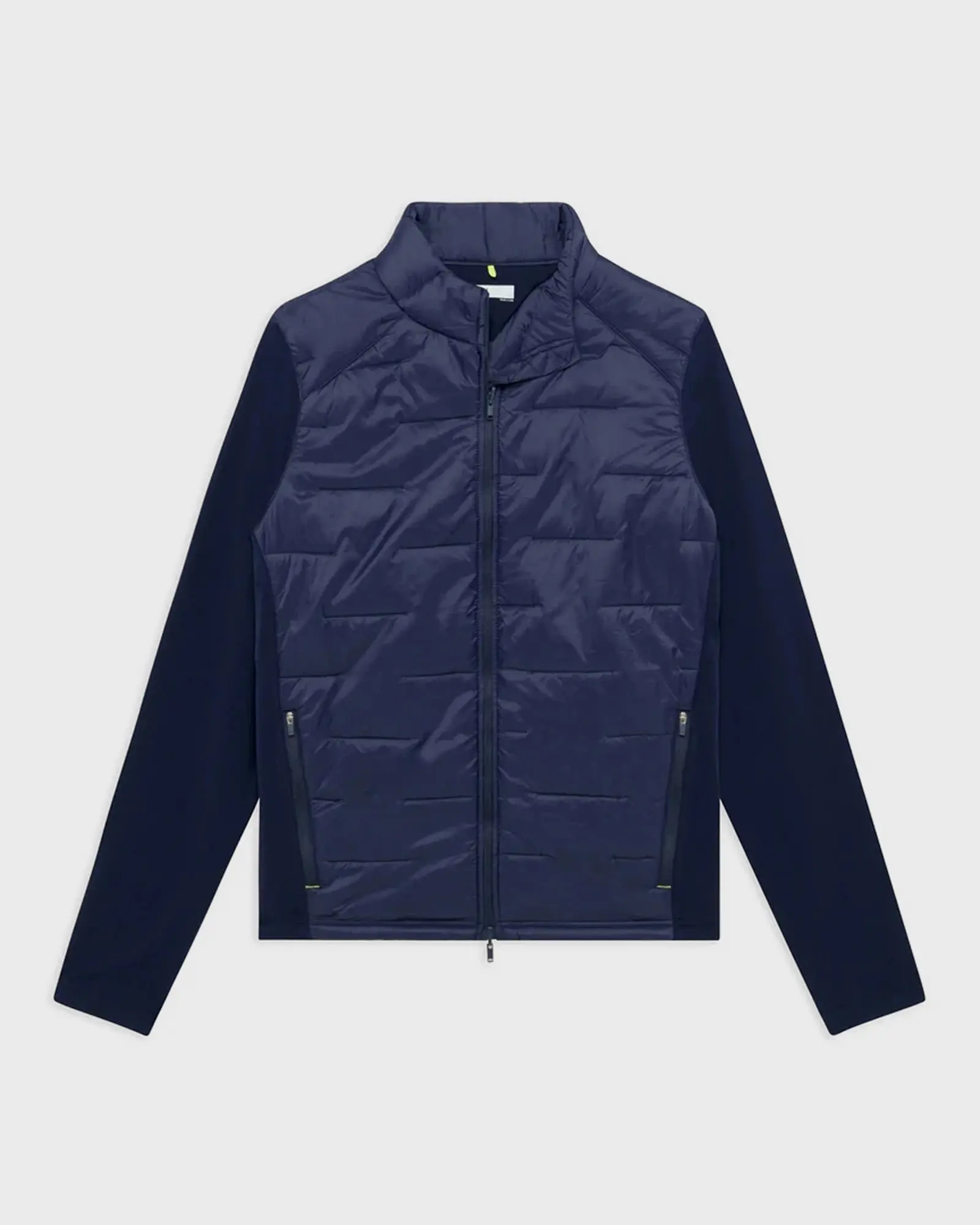 Layering made lightweight! This puffer jacket cuts the bulk with a slim fit, zip-front closure and side pockets. Soft and weightless in a quilted shell with knit panels on each side.
