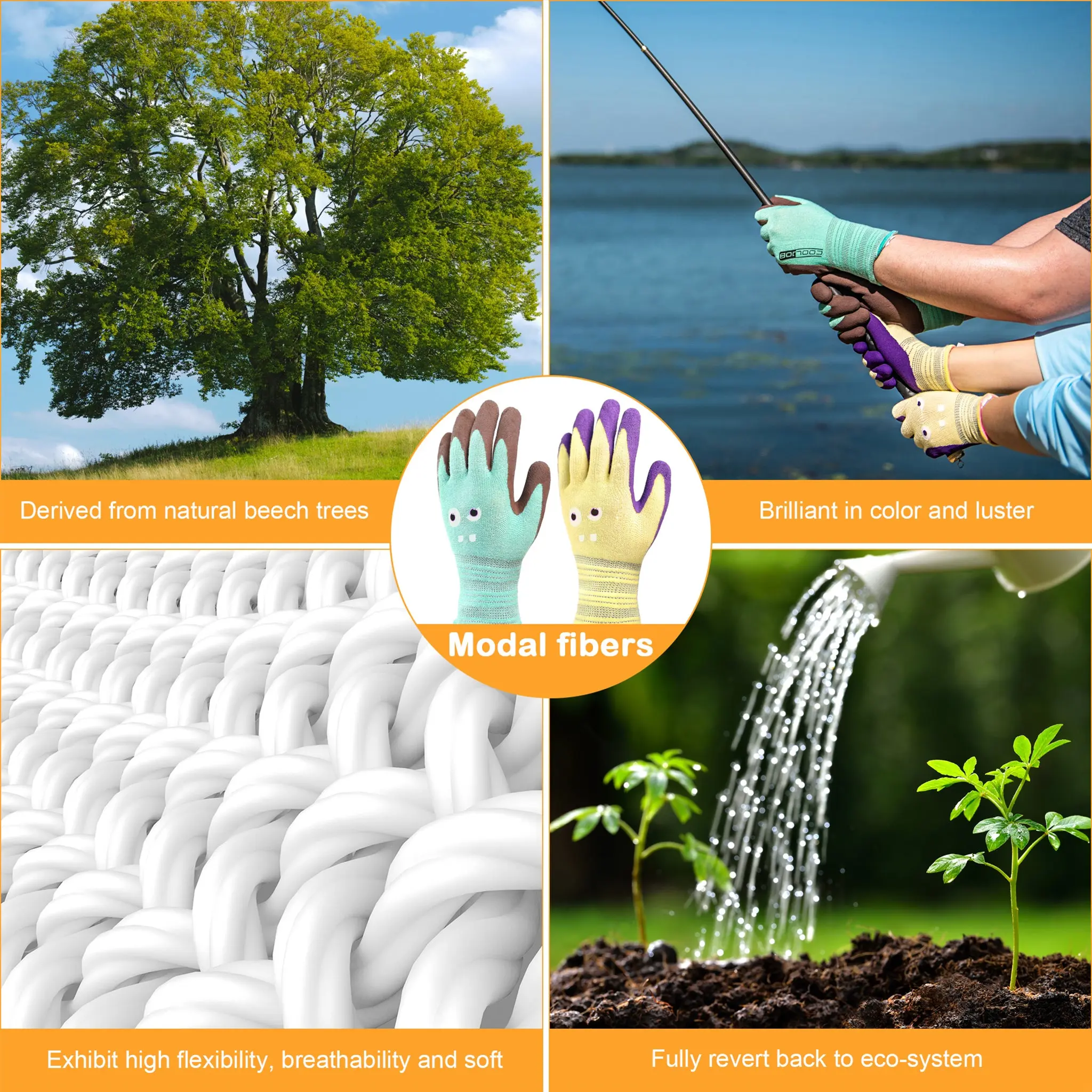 High-quality kid gloves offer superior dexterity, flexibility, and protection. Breathable modal base to keep hands cool& dry. Soft modal fabric for highly stretchable& breathable. Latex foamed coating for more protection &non-slip grip. Knitted wrist to keep dirt out. Kids safety work gloves for general purpose, garden, yard, or indoor and outdoor play. Your little helpers will enjoy more when working & playing with you.