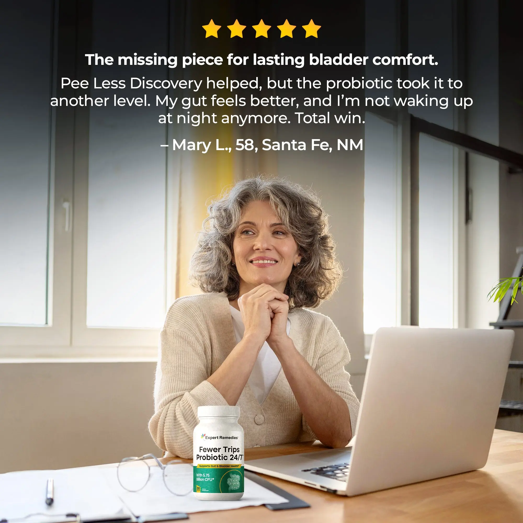 Expert Remedies Fewer Trips Formula Digestive Comfort & Gut Support Supplement with PACRAN D Mannose & Phytopin for Bladder Control
