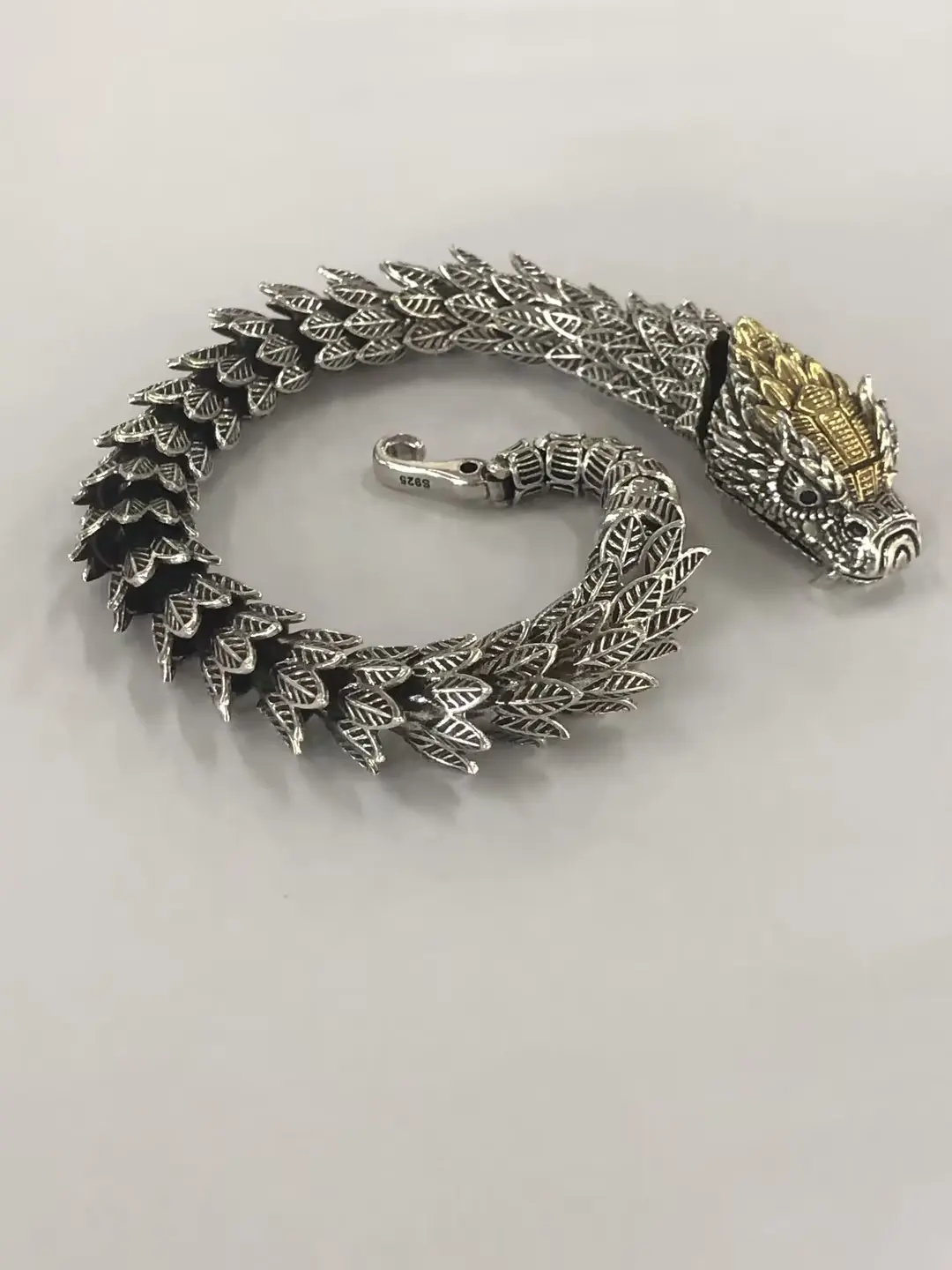 Black Snake Silver-plated Bracelet Men's Retro Style