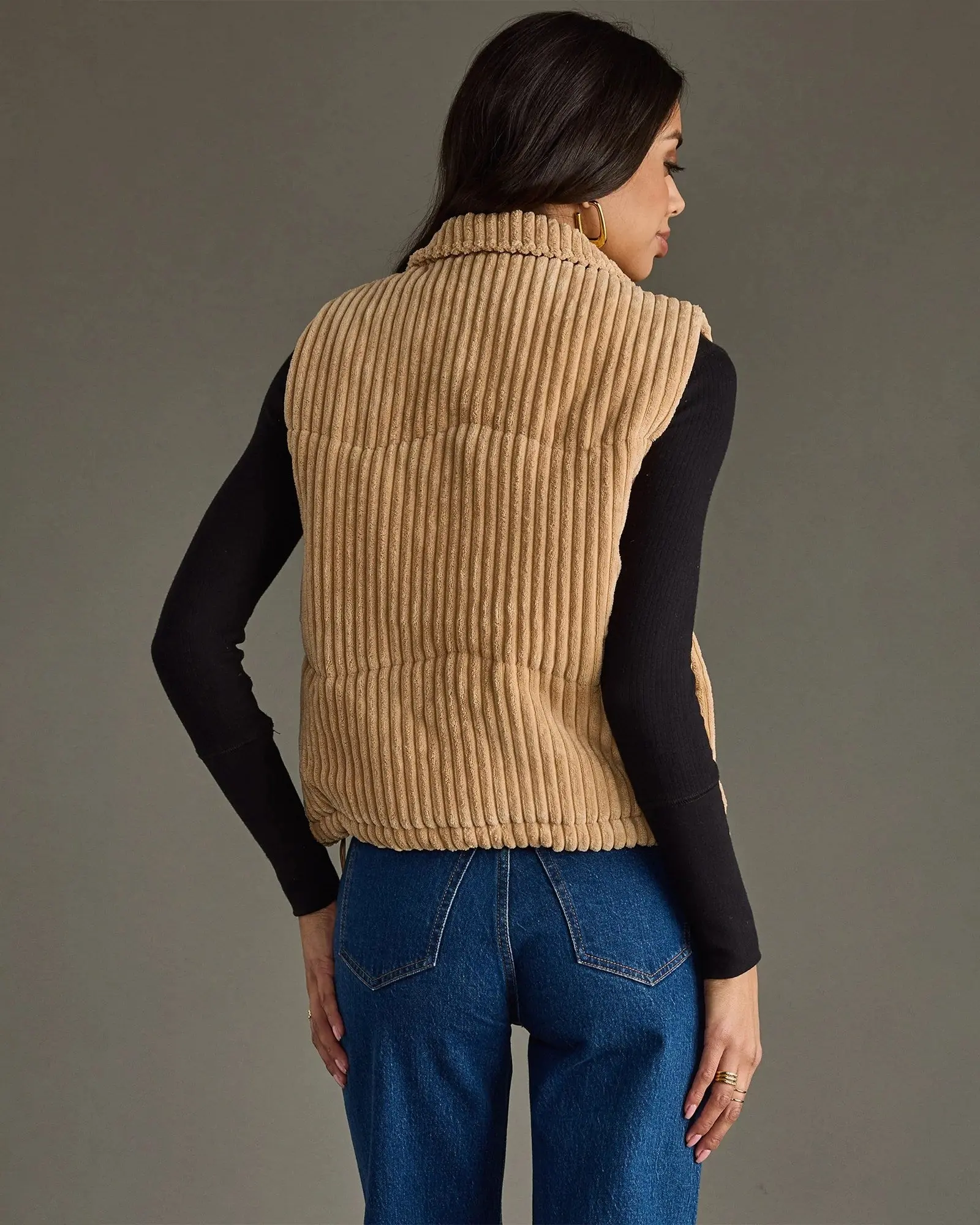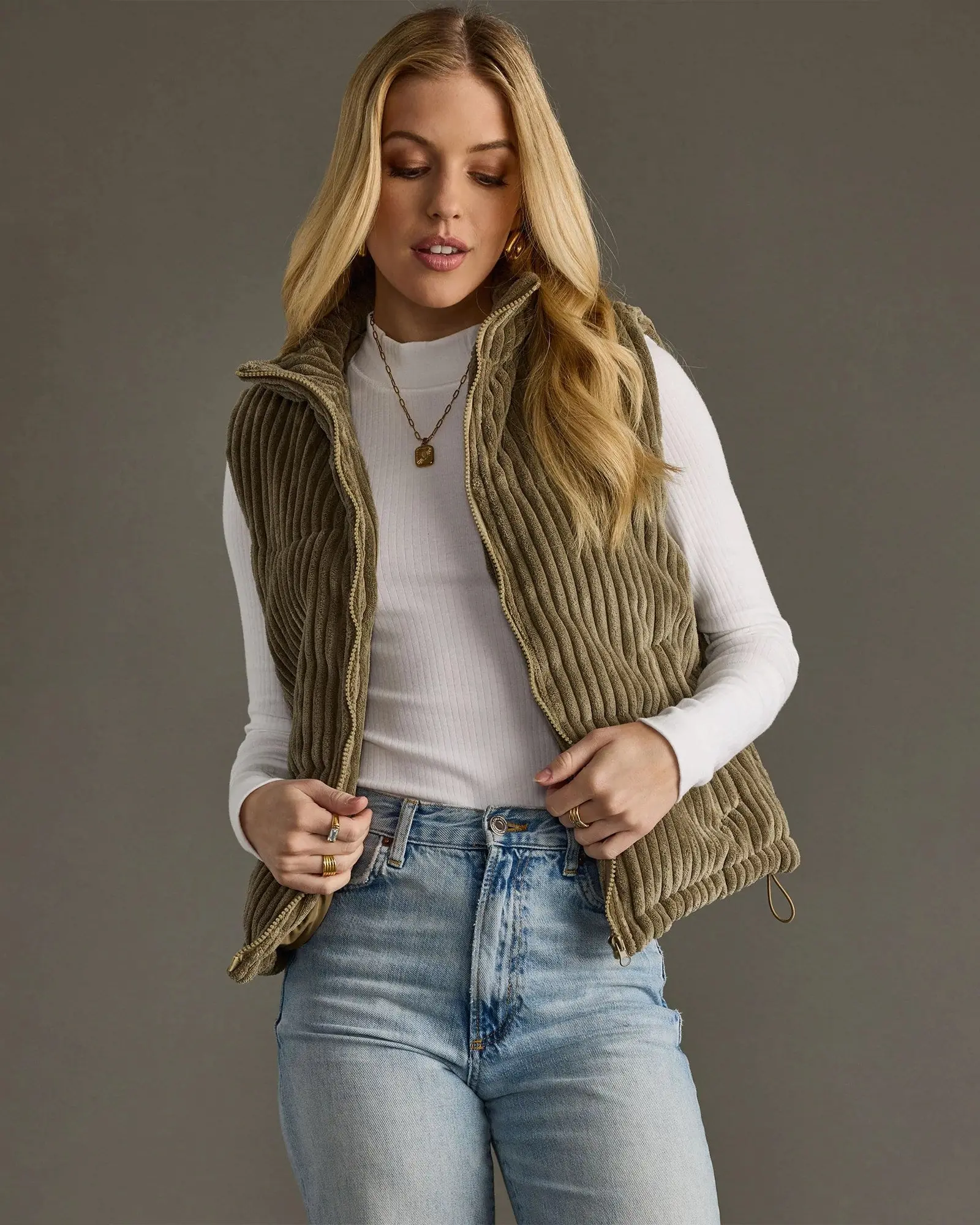 Layer up and love! This corduroy vest is the perfect finishing piece to your cozy outfits. Chunky, ribbed knit with a stand collar and zip-front closure. It even has side-entry pockets to keep small essentials — or warm your hands.